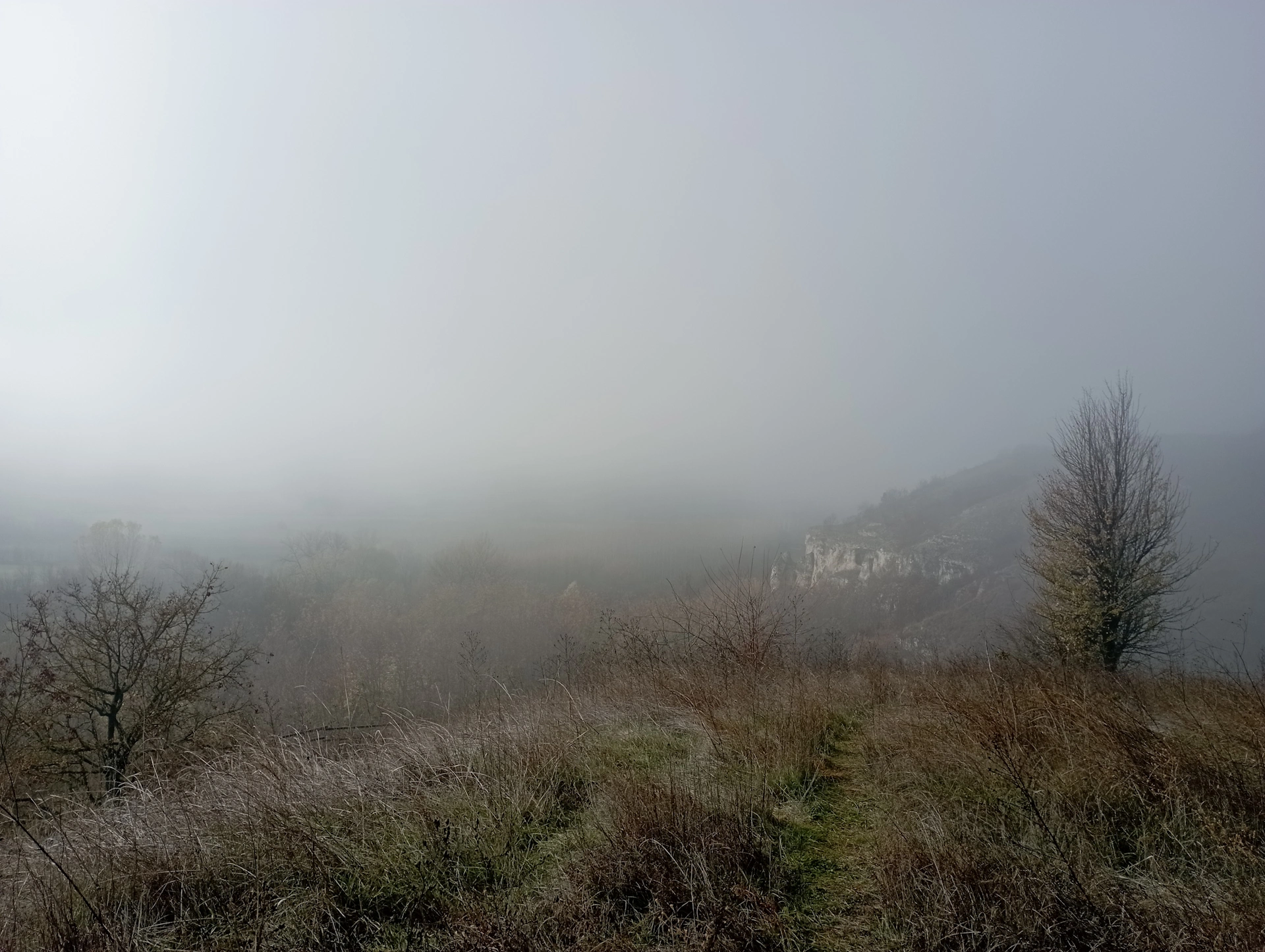 Въпреки напредването на деня, около нас се стелеше мъгла, а клоните на ниските шубраки, бяха покрити с бяла, искряща слана. Движехме се смело по черния път, без да поглеждаме картата. Така, при една нива, вместо да кривнем вляво, продължихме направо покрай нея и не след дълго стигнахме до „задънена улица“. Картата сочеше, че целта ни е някъде вляво от нас, но от нея ни отделяше дълбок овраг. Не ни се връщаше назад и през висока, обледенена трева и бодливи храсти, успяхме да изскочим на отсрещния склон на оврага.