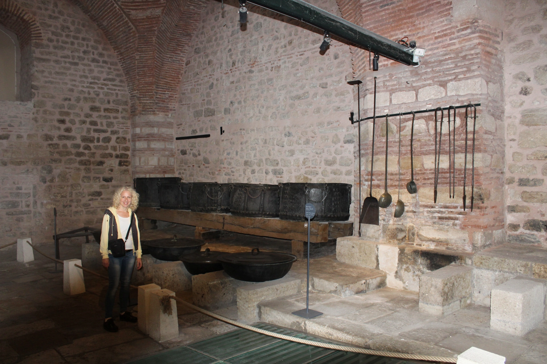 Движейки се наслуки из този лабиринт от сгради и дворове, попаднахме на кухнята на двореца. Пред нас, бяха наредени голям асортимент от огромни черпаци и казани, които по скоро ми заприличаха на уреди за мъчение в древен зандан😊 Не им е било лесно, на готвачите на султана, грижещи се за изхранването на многочисленото му семейство, достигащо няколкостотин, а понякога и няколко хиляди наложници😊