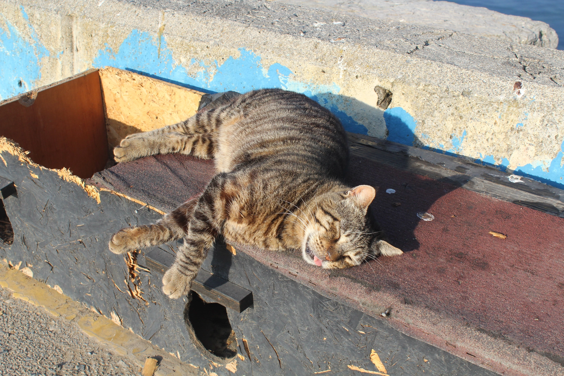 О, да не забравяме и котките. Те бяха навсякъде, разхождаха се достолепно по алеите или се припичаха по камъните. За тях, имаше направени къщички по целото крайбрежие. И сега се усмихвам гледайки снимката на един охранен котарак, който изплезил език спеше върху котешката си къщичка. Нищо, дори фотосеията с него, не можа да наруши спокойния му сън.