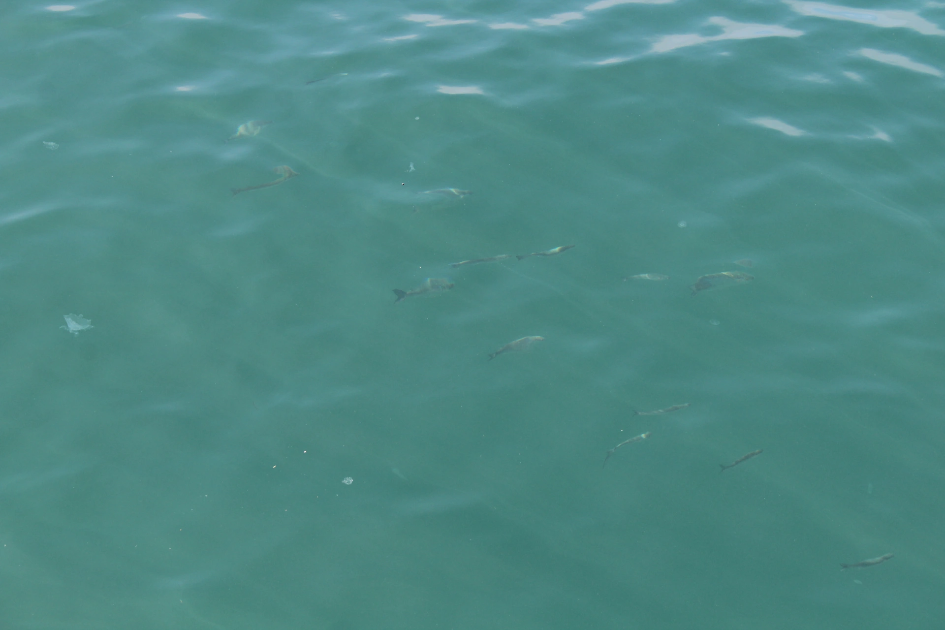 Досами пристана, водата сякаш променя цвета си. Вглеждам се в нея и очакванията ми за пореден път не са излъгани – виждам силуетите на плаващи близо до повърхноста кефали. Често срещана тук гледка.
