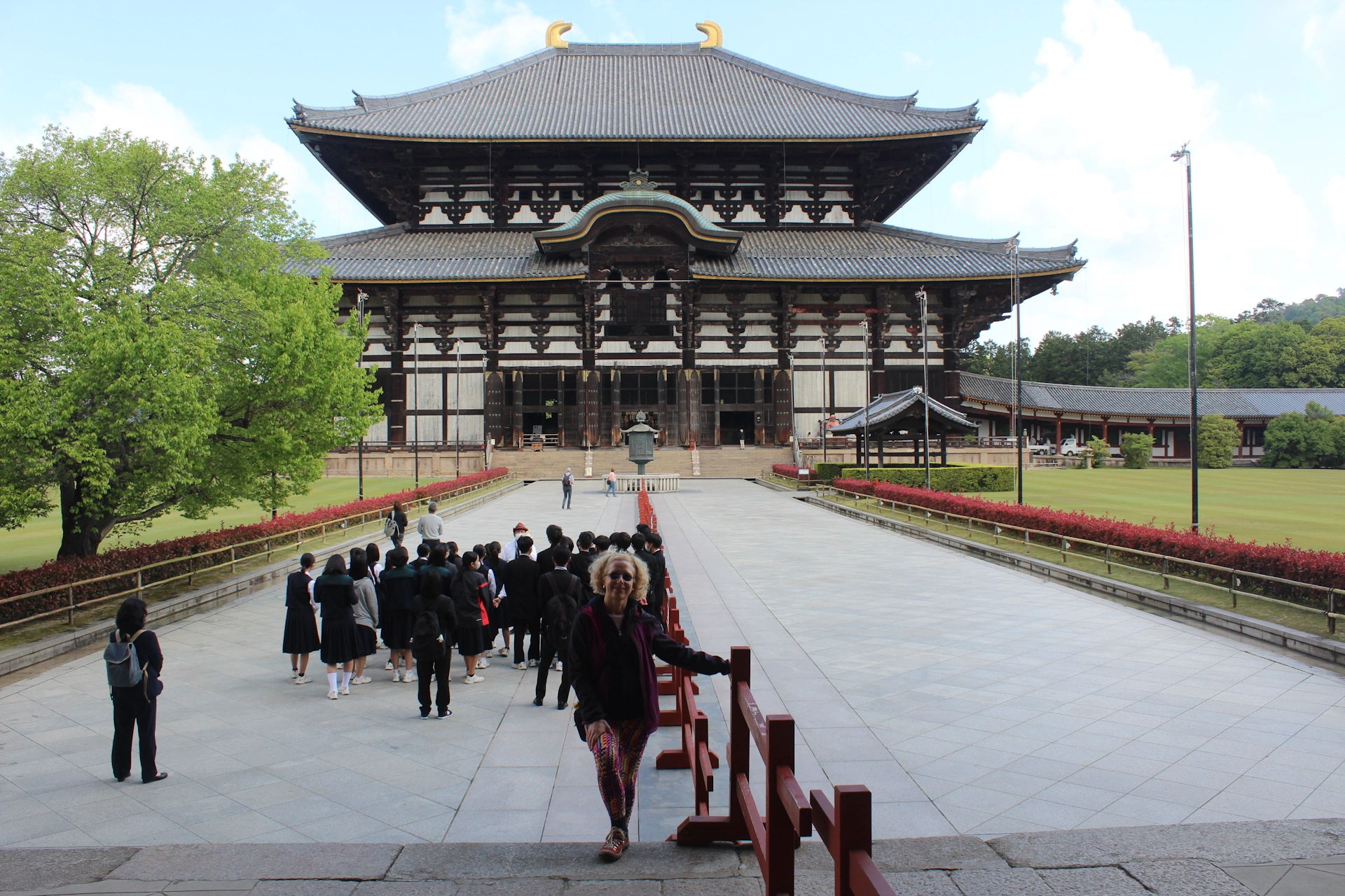 След трудната раздяла с еленчетата, се отправихме да видим най-стария (749 г.) и един от най-големите будиски храмове в Япония, явяващ се и най-голямата дървена конструкция в света – Todaiji Temple, в превод „Големия храм на истока“. Висок е 49 метра, с дължина 57 метра и дълбочина 50 метра. За да стигнете до храма, първо трябва да мините през огромна дървена порта (Великата южна порта Nandaimon), която е главния вход на храма Тодайджи.