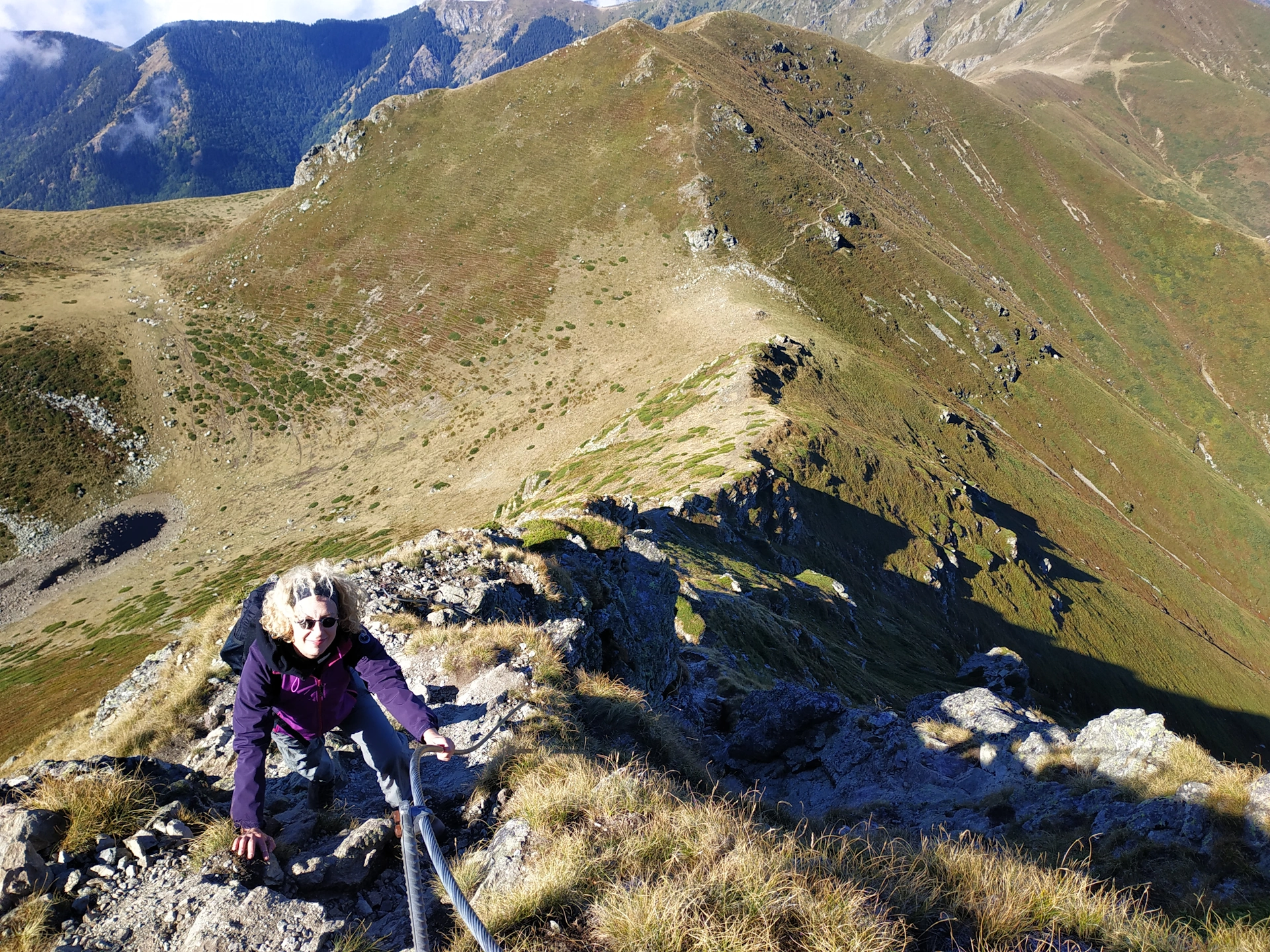 Впечатляващ, силно насечен, тесен, скален ръб с назъбен профил. В най-високата си част, при връх Голям Кръстец достига до 2035 м. Тук отново на помощ ни дойдоха металните предпазни въжета, и повярвайте ми, имаше защо. Пътеката по билото на Кръстците, е опасна, особенно за хората със страх от височини.