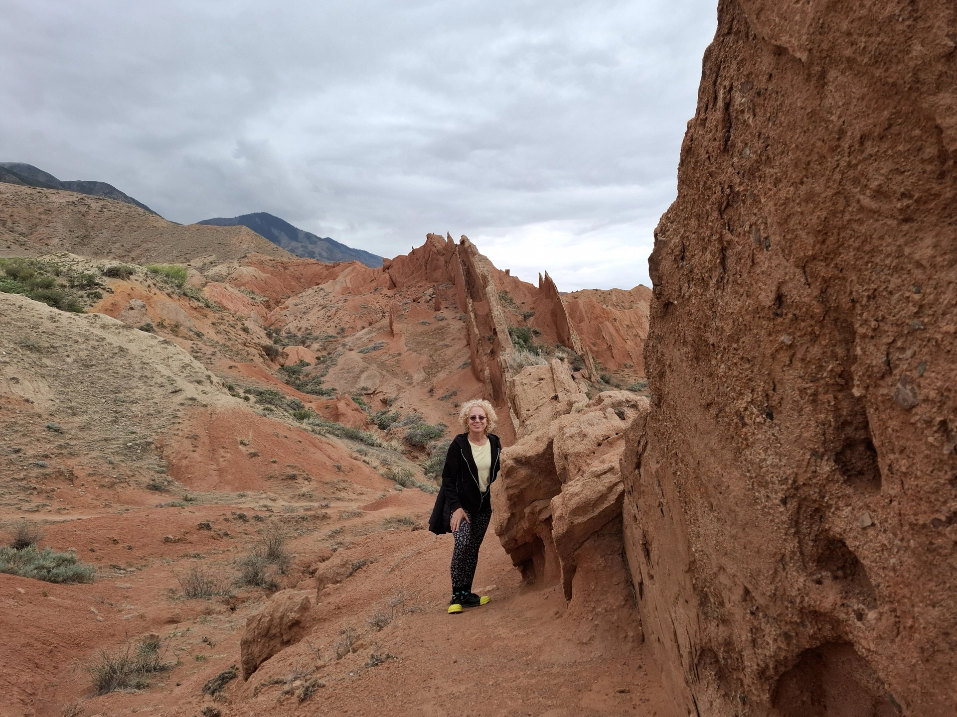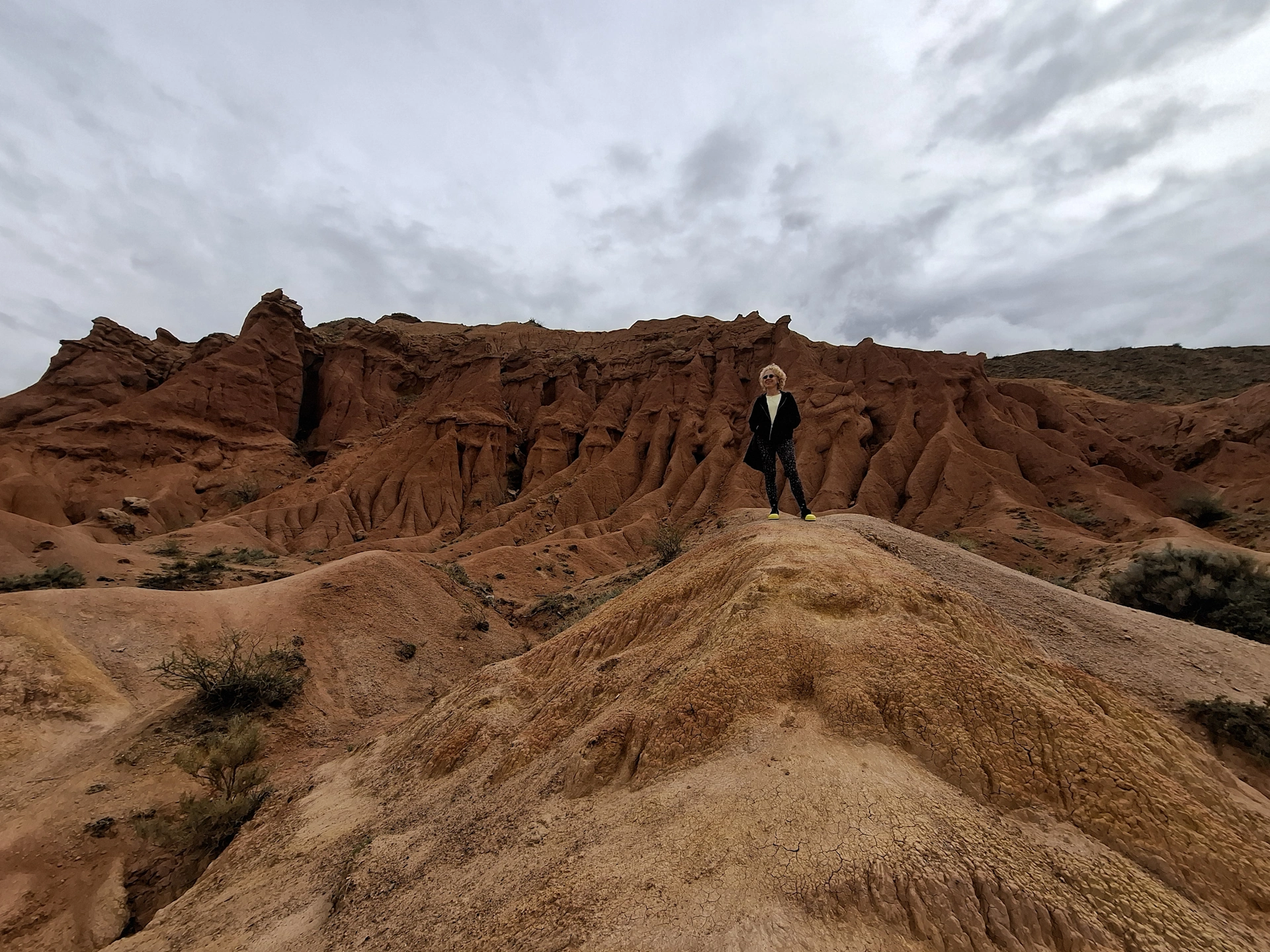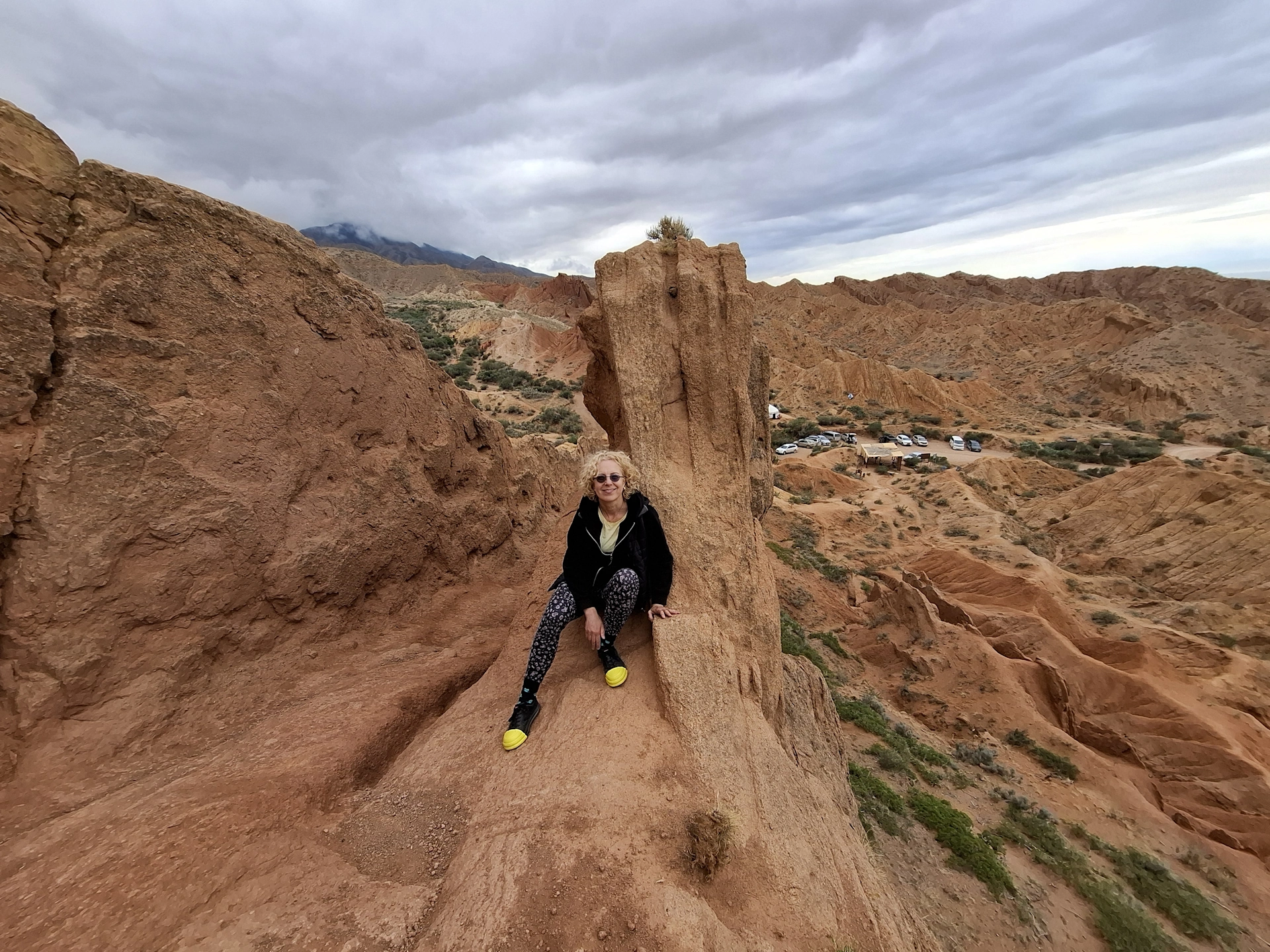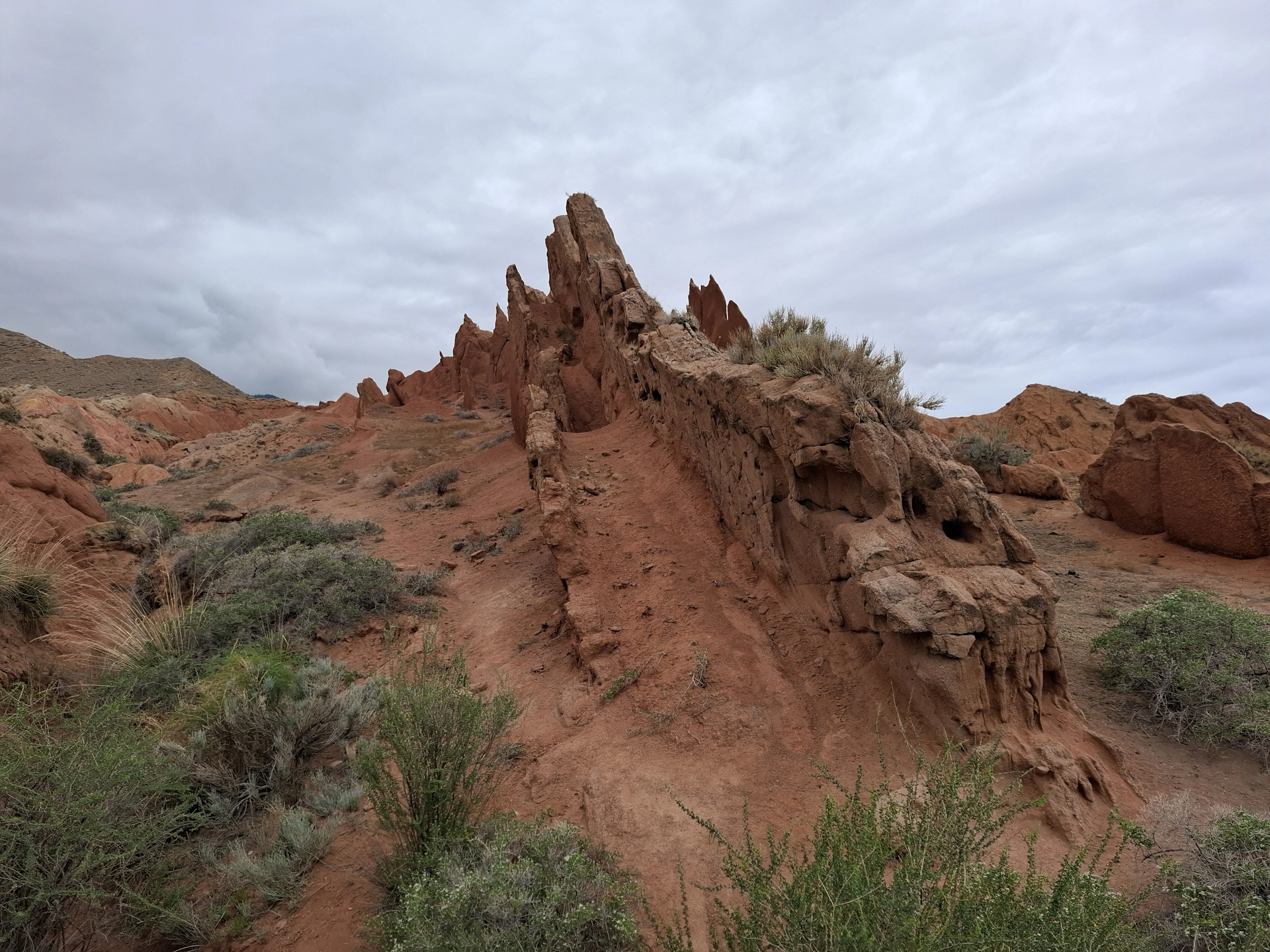 А ние, подтикнати от импулса, решихме да се покатерим по гръбнака на дракона и от там да се огледаме наоколо, за още красиви гледки. Не бяхме сами в това си начинание. Славата на Сказка, се носи далеч извън пределите на Киргизстан, така че тук винаги има туристи.