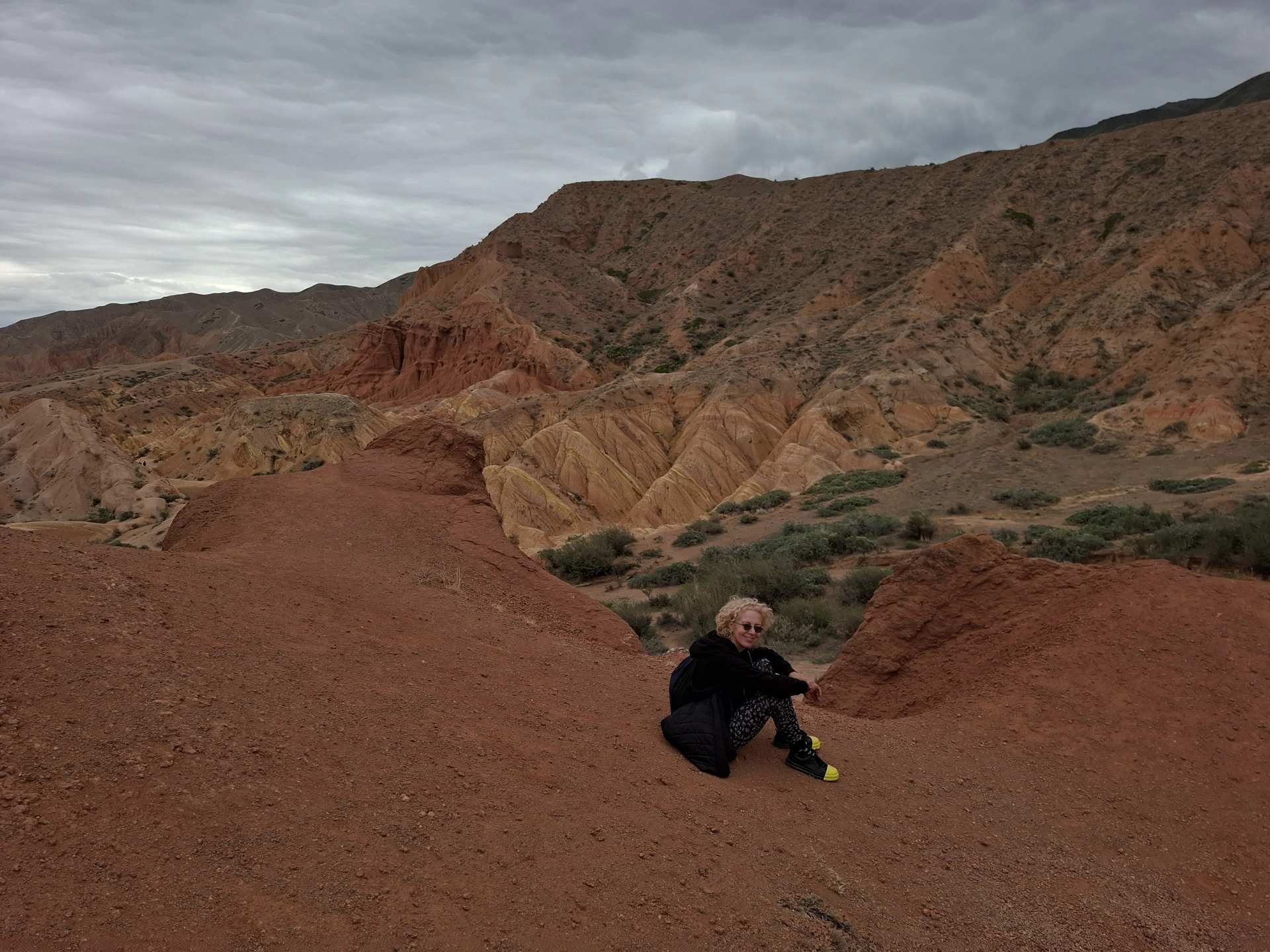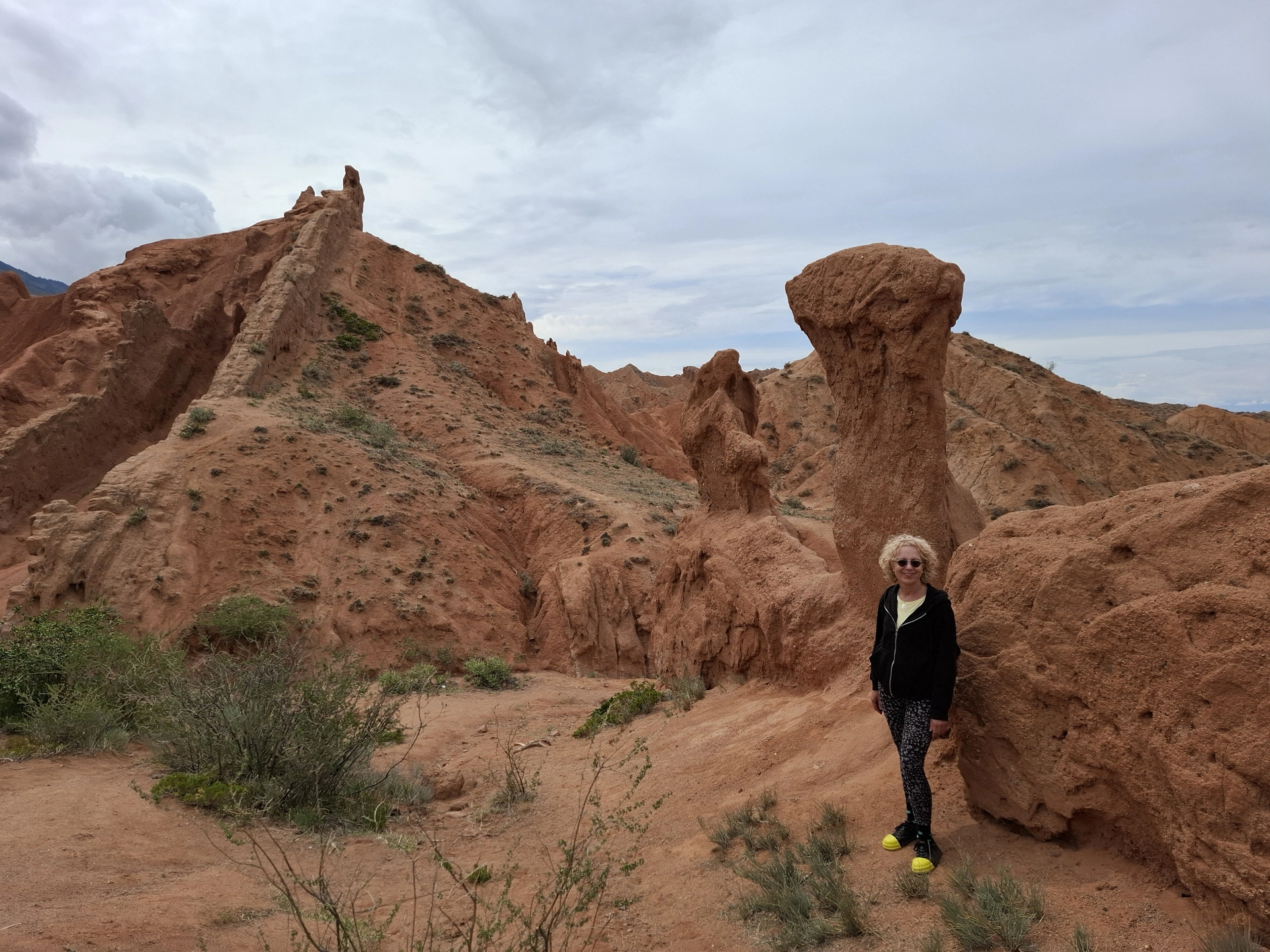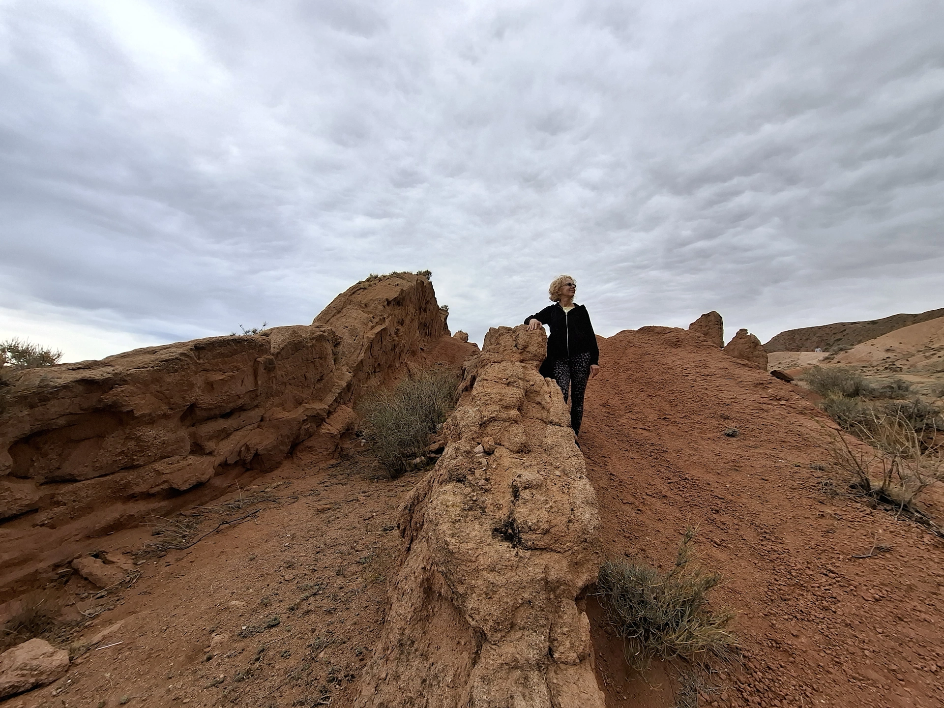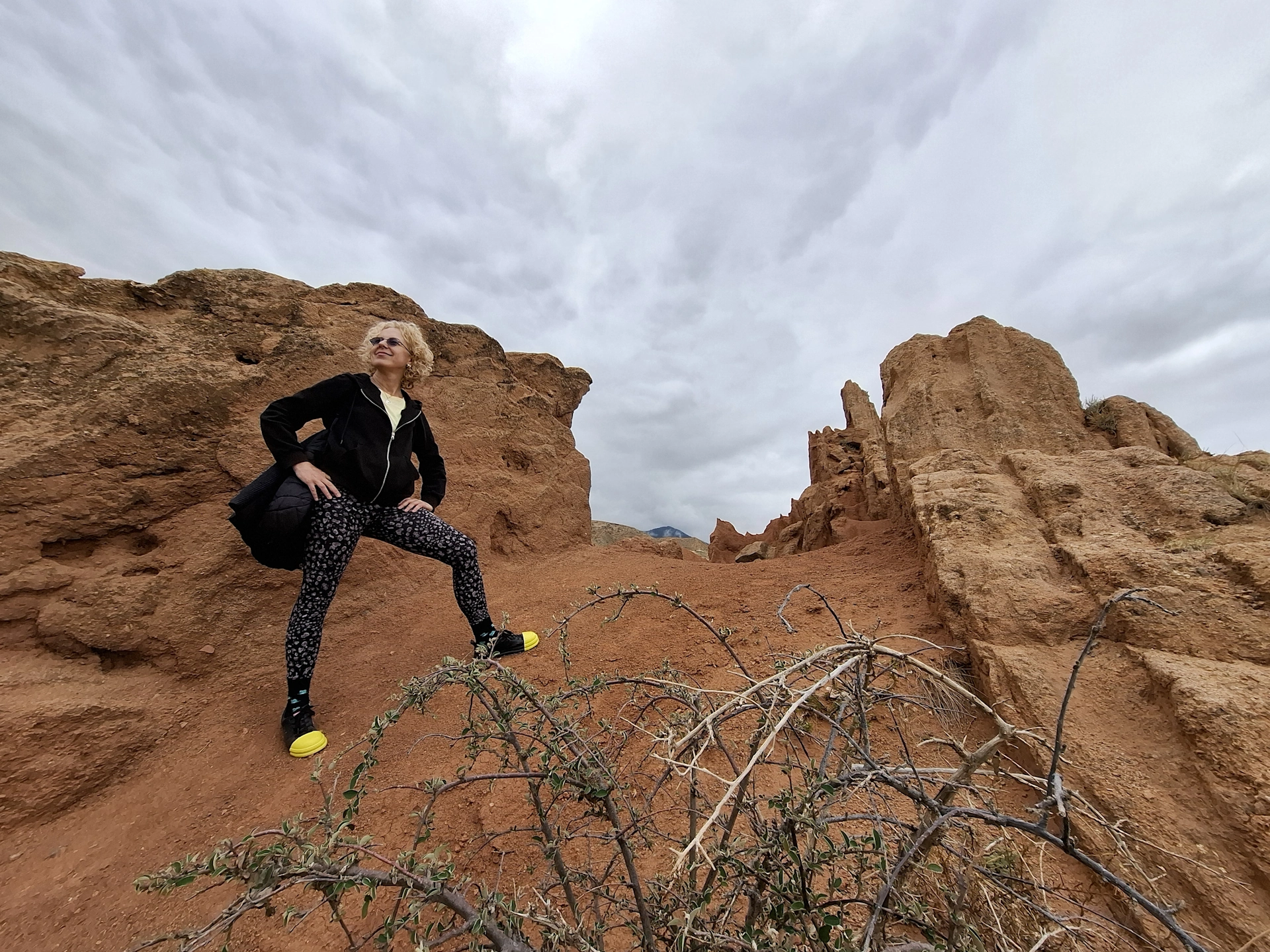 А ние, подтикнати от импулса, решихме да се покатерим по гръбнака на дракона и от там да се огледаме наоколо, за още красиви гледки. Не бяхме сами в това си начинание. Славата на Сказка, се носи далеч извън пределите на Киргизстан, така че тук винаги има туристи.