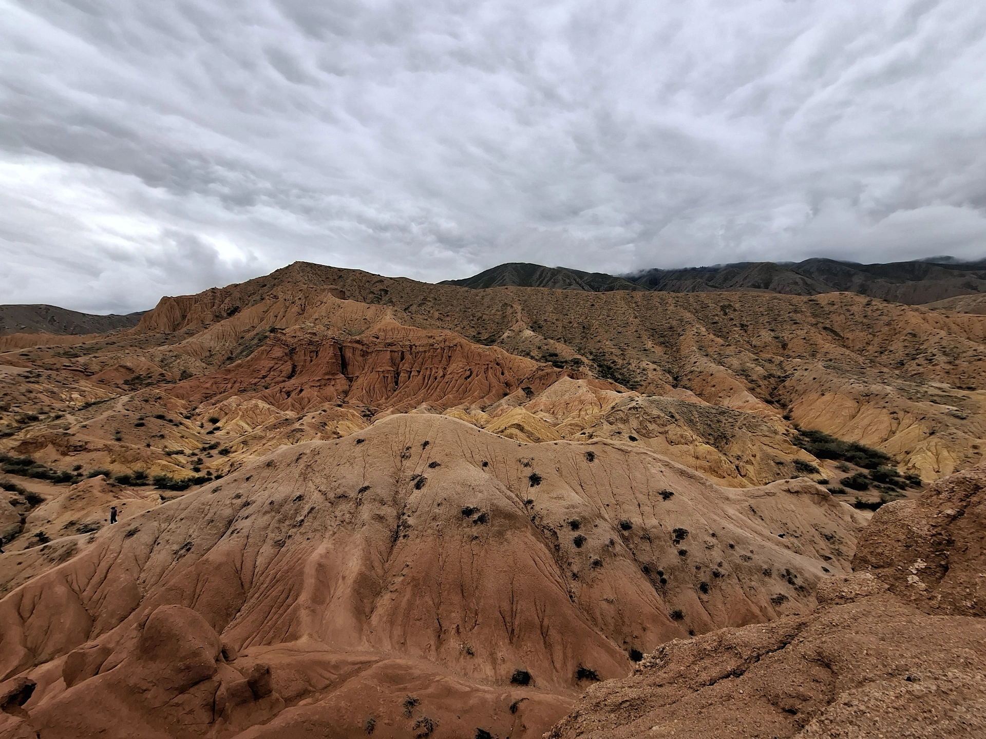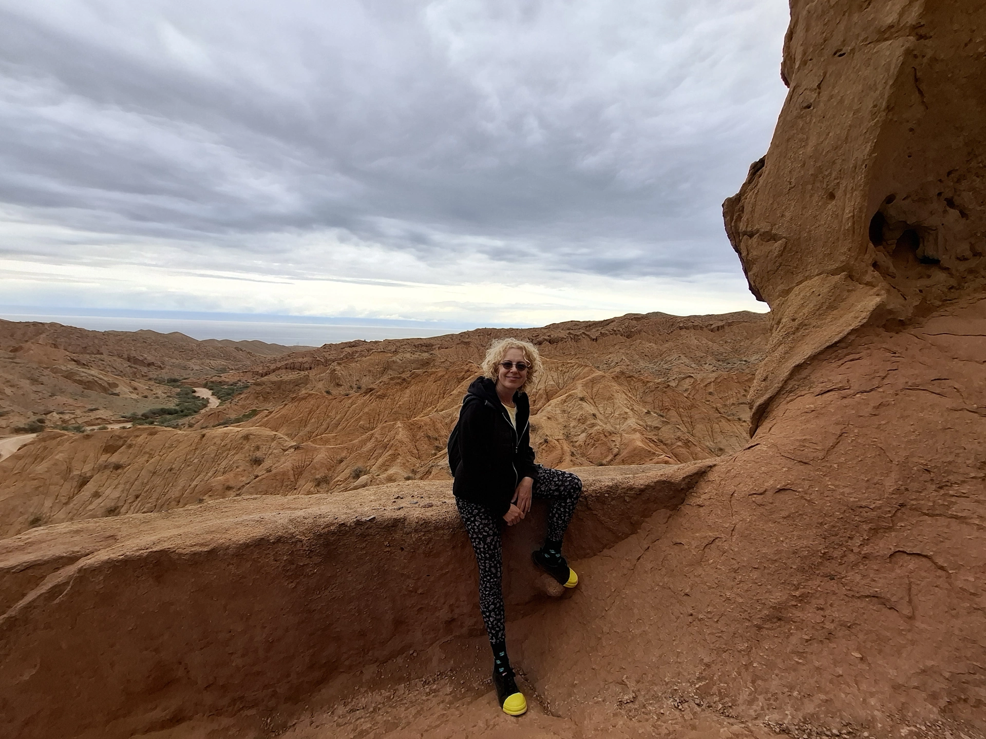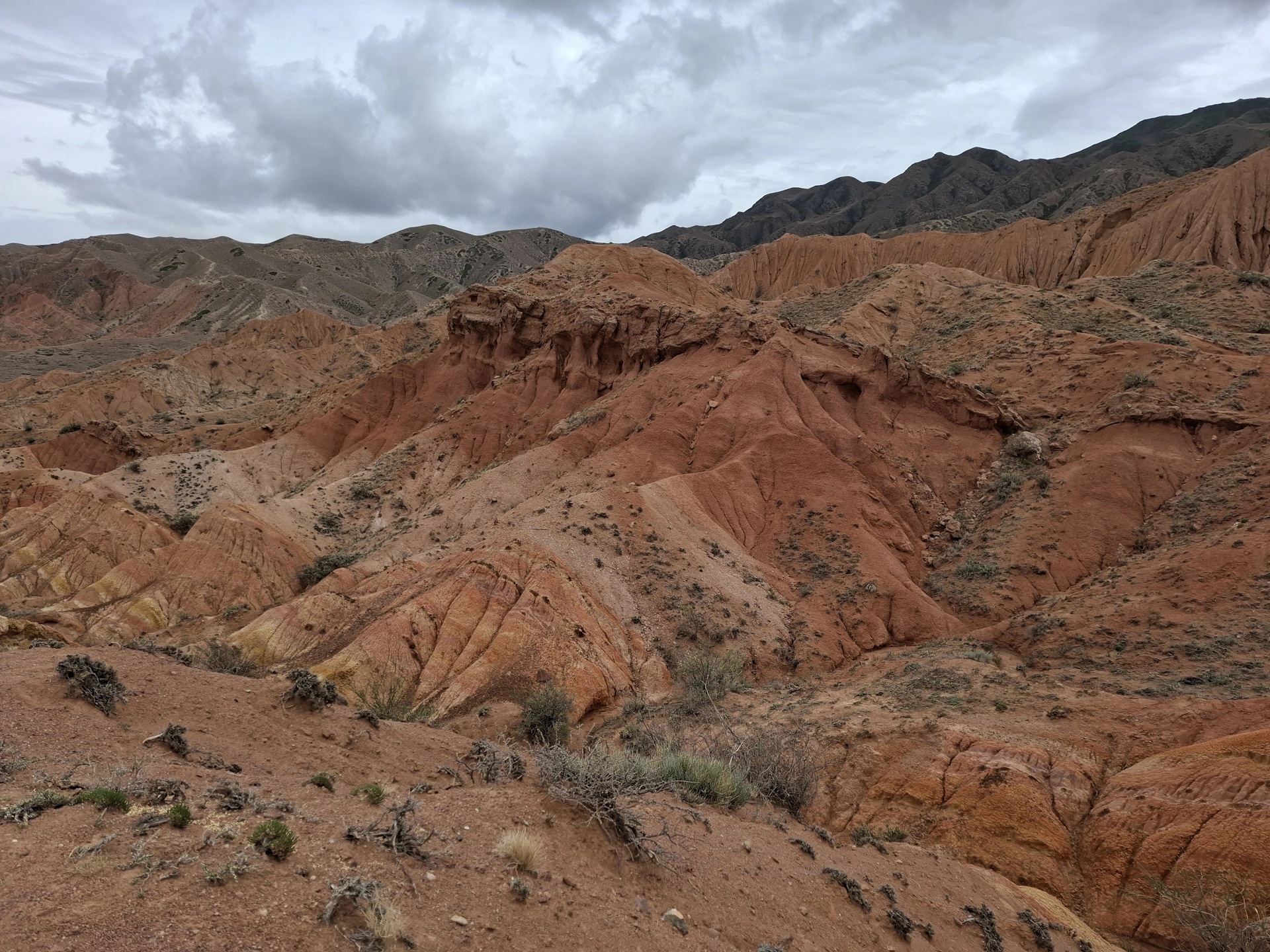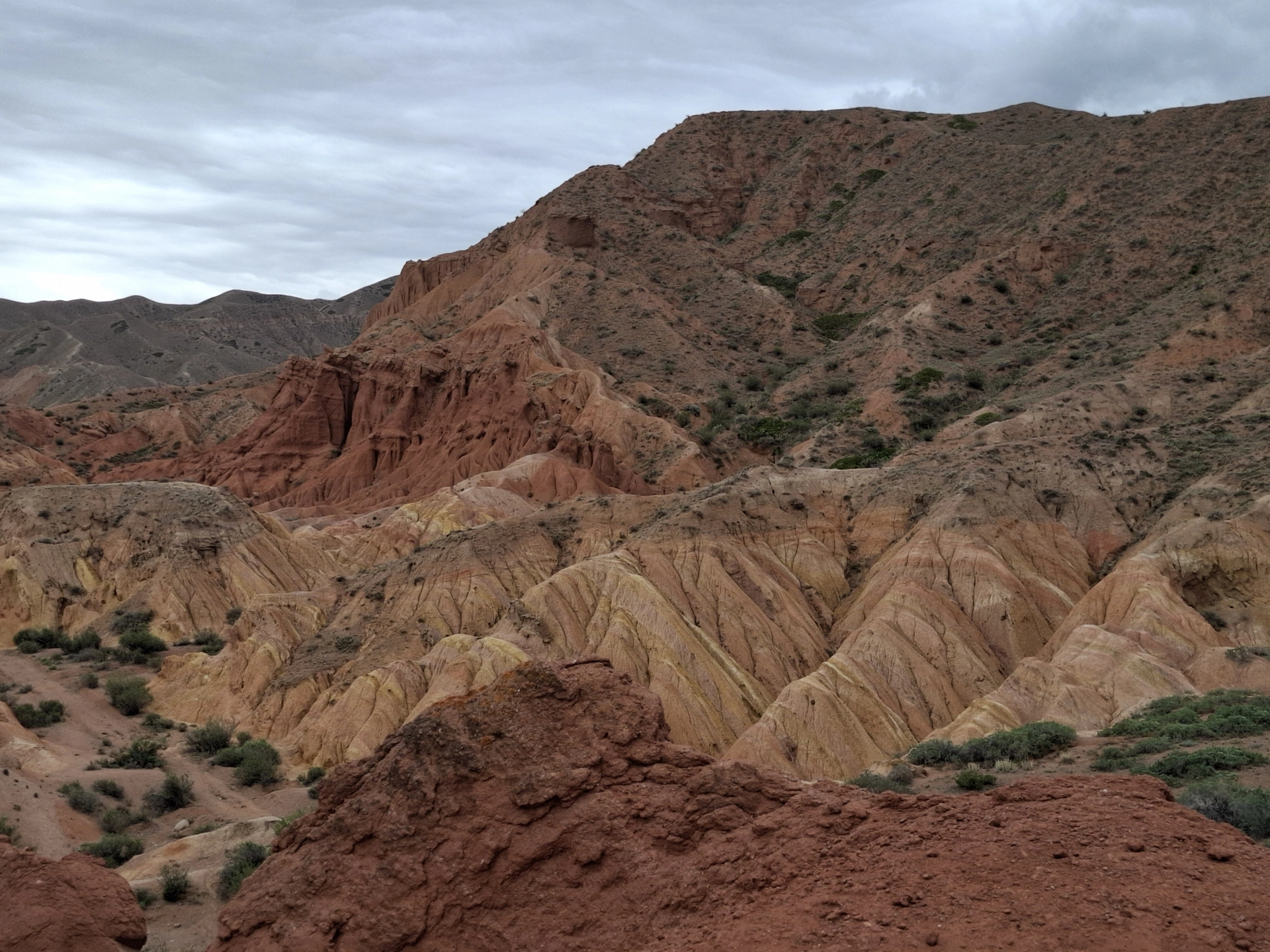 А ние, подтикнати от импулса, решихме да се покатерим по гръбнака на дракона и от там да се огледаме наоколо, за още красиви гледки. Не бяхме сами в това си начинание. Славата на Сказка, се носи далеч извън пределите на Киргизстан, така че тук винаги има туристи.