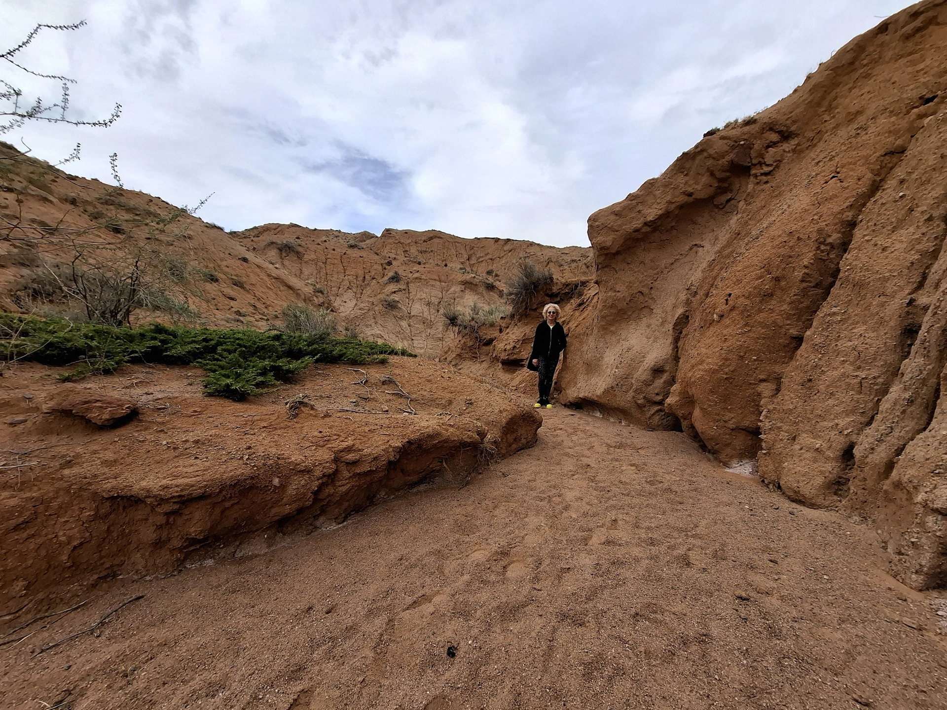 Името му, в превод от руски означава „Приказка“. Не е голям, даже, в сравнение с Конорчек /по-рано посетения от нас каньон/, бих казала малък, но изключително красив. Простира се на около 2,5 км. от запад на изток, на близо 1800 м.н.в., като най-голямата му ширина е около километър. Започнал е да се образува още през неозойската ера, в периода на неогена. От тогава, та до днес, в продължение на милиони години, водата и вятърът, отнасяйки по-меките и песъчливи слоеве на почвата, са оформили причудлив, сякаш неземен пейзаж, сочен за едно от най-красивите места в тази част на Киргизстан.