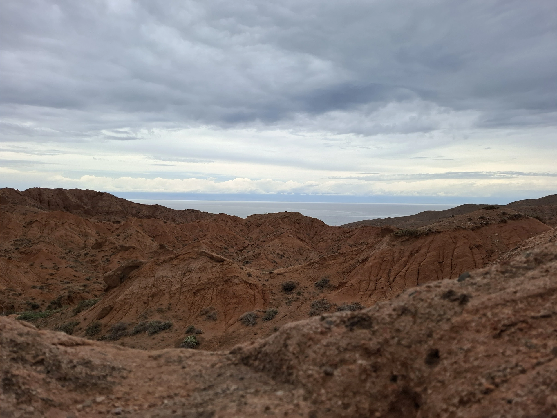 От едната ни страна се издигаше планината, а от другата, сините води на Исък Кул, с пелена от бели облаци над тях. Прекрасни гледки, умиротворяващи душата и даряващи усещане, което снимките, за жалост, не могат да предадат.