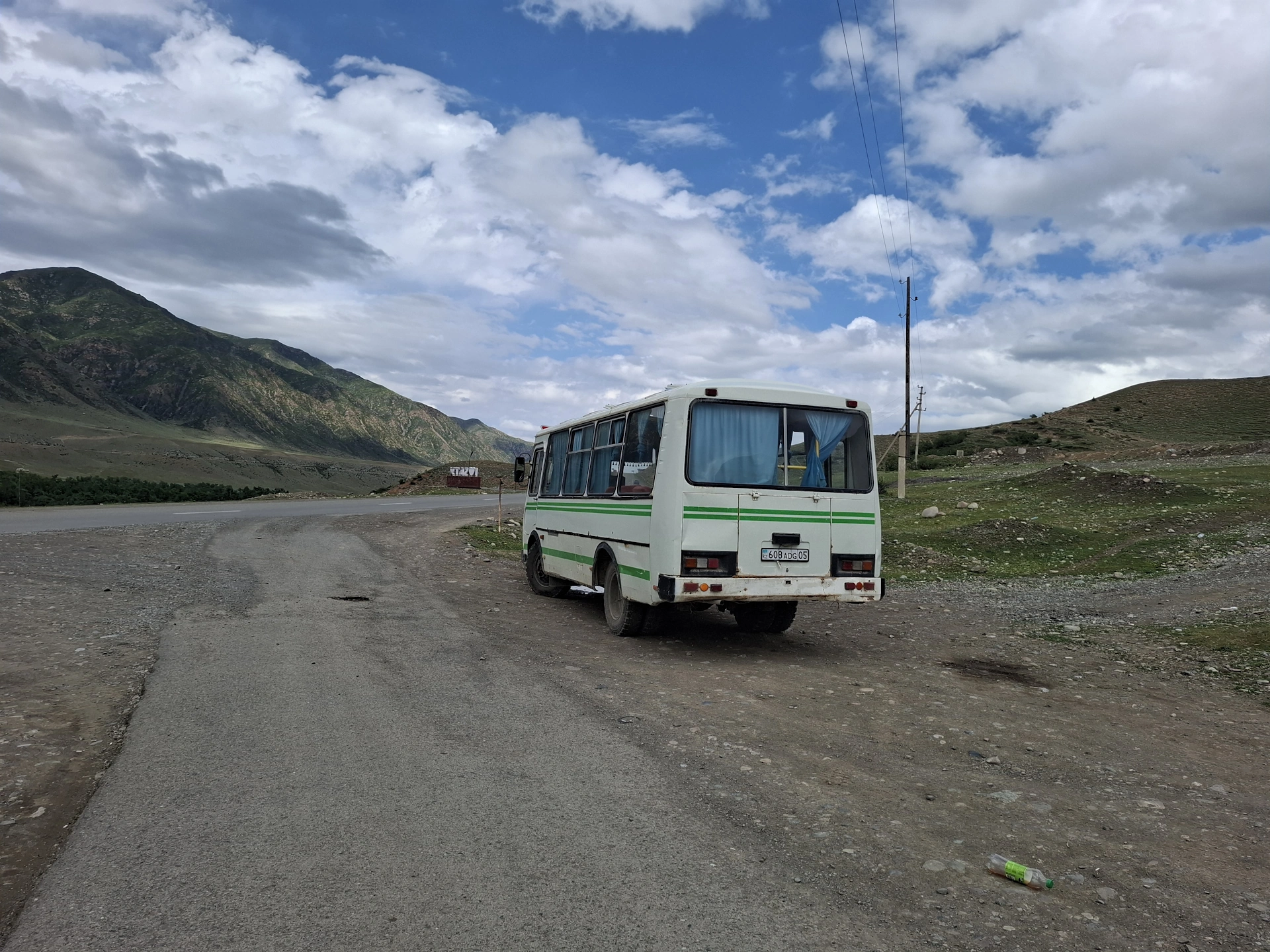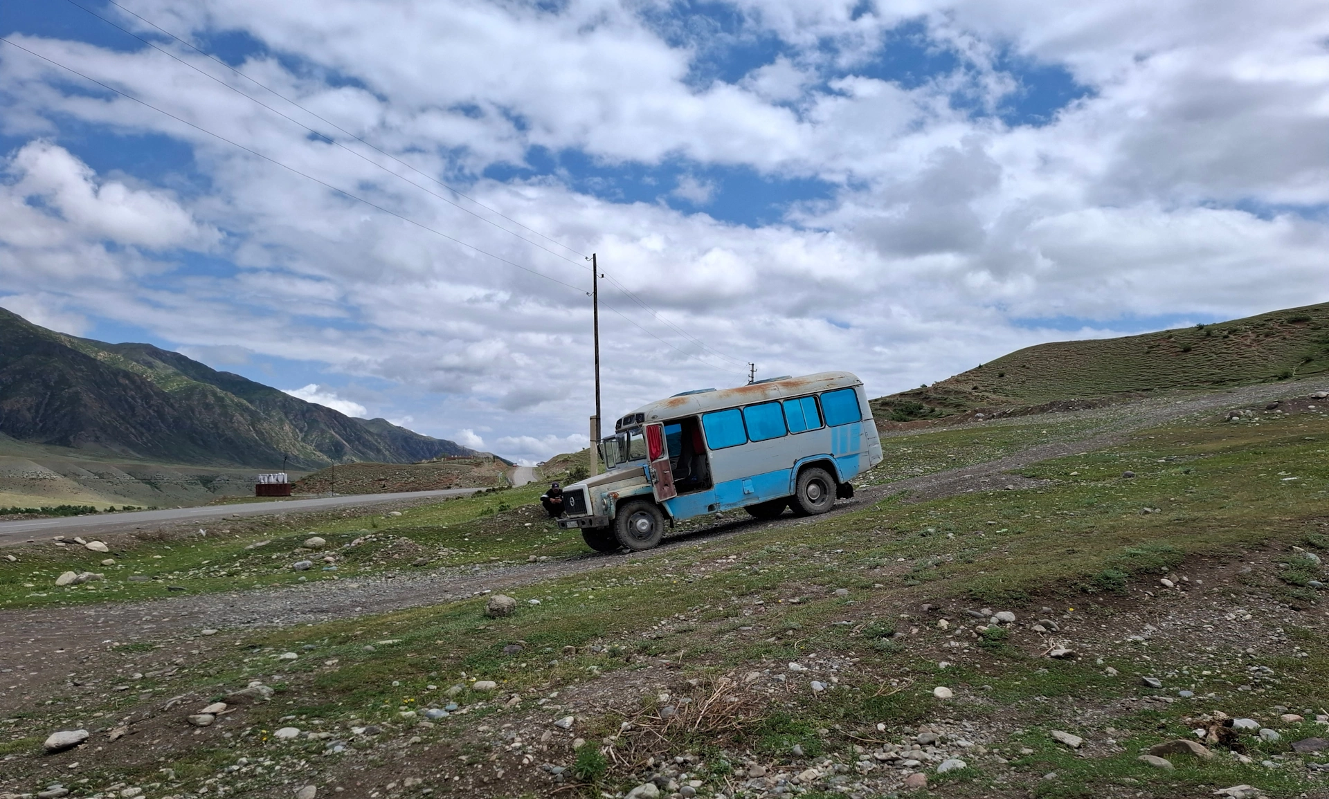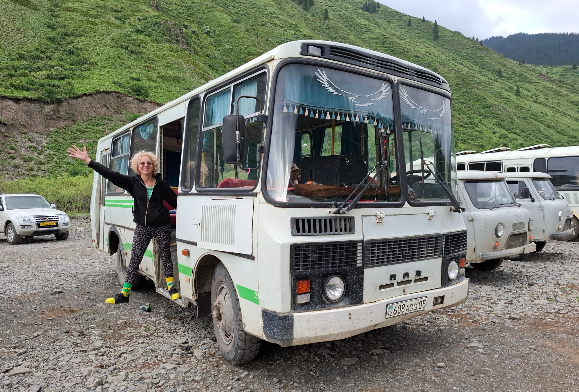 На отбивката към езеро Каинди, ни очакваше нашият високопроходим превоз – останал от времената на соцепохата стар, очукан ПАЗ.