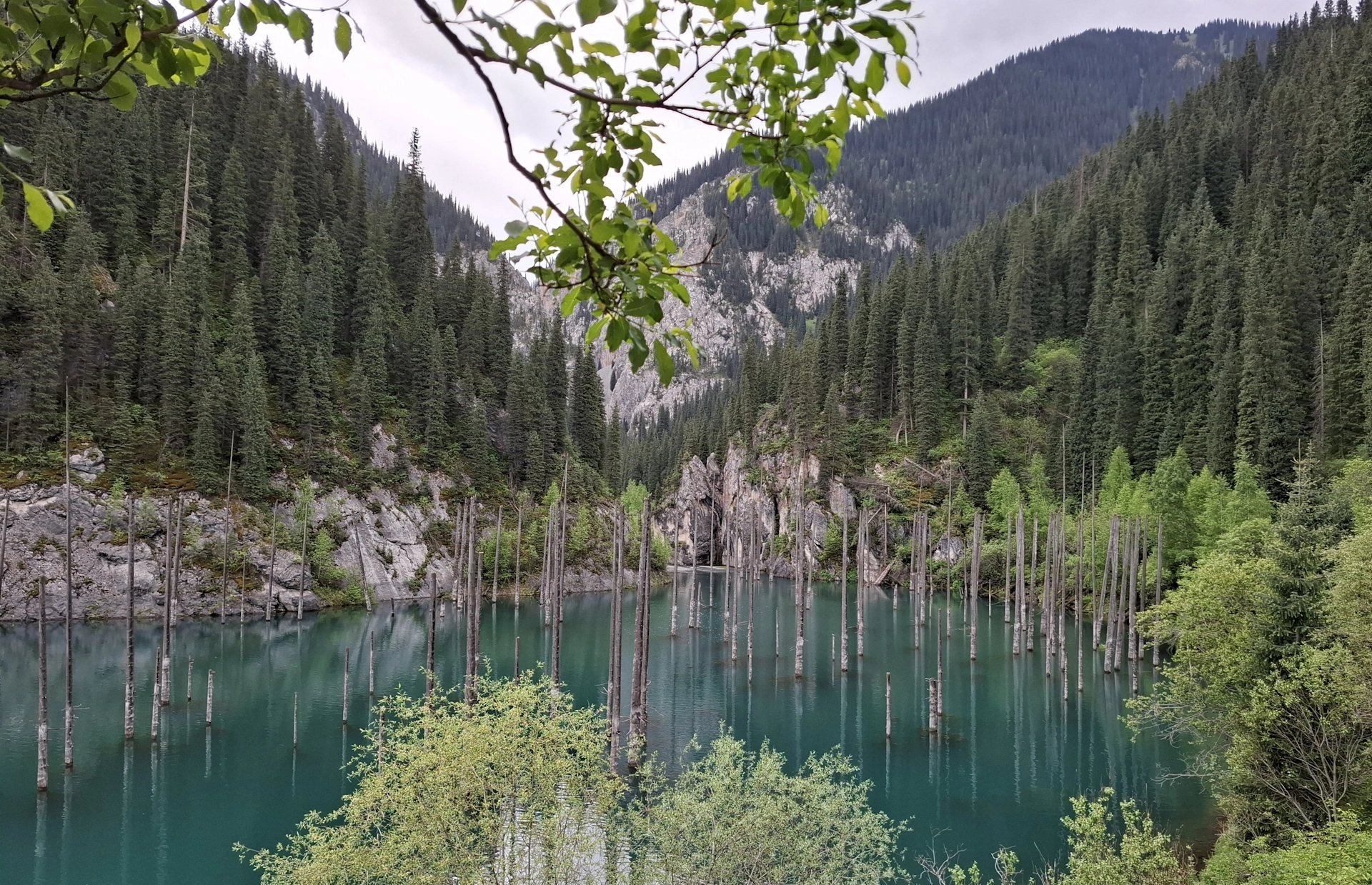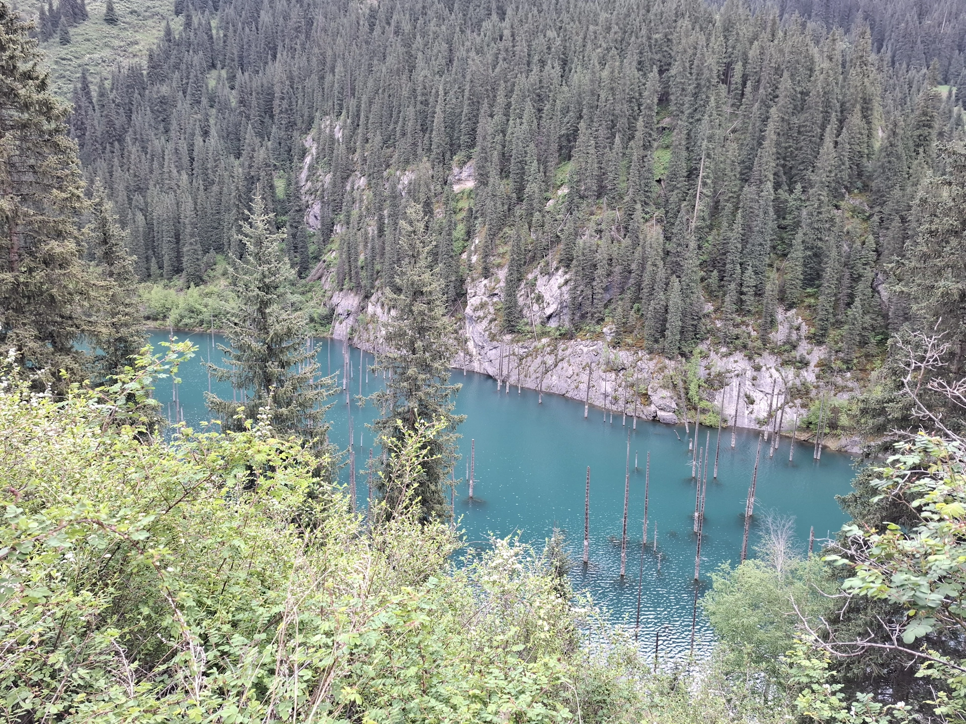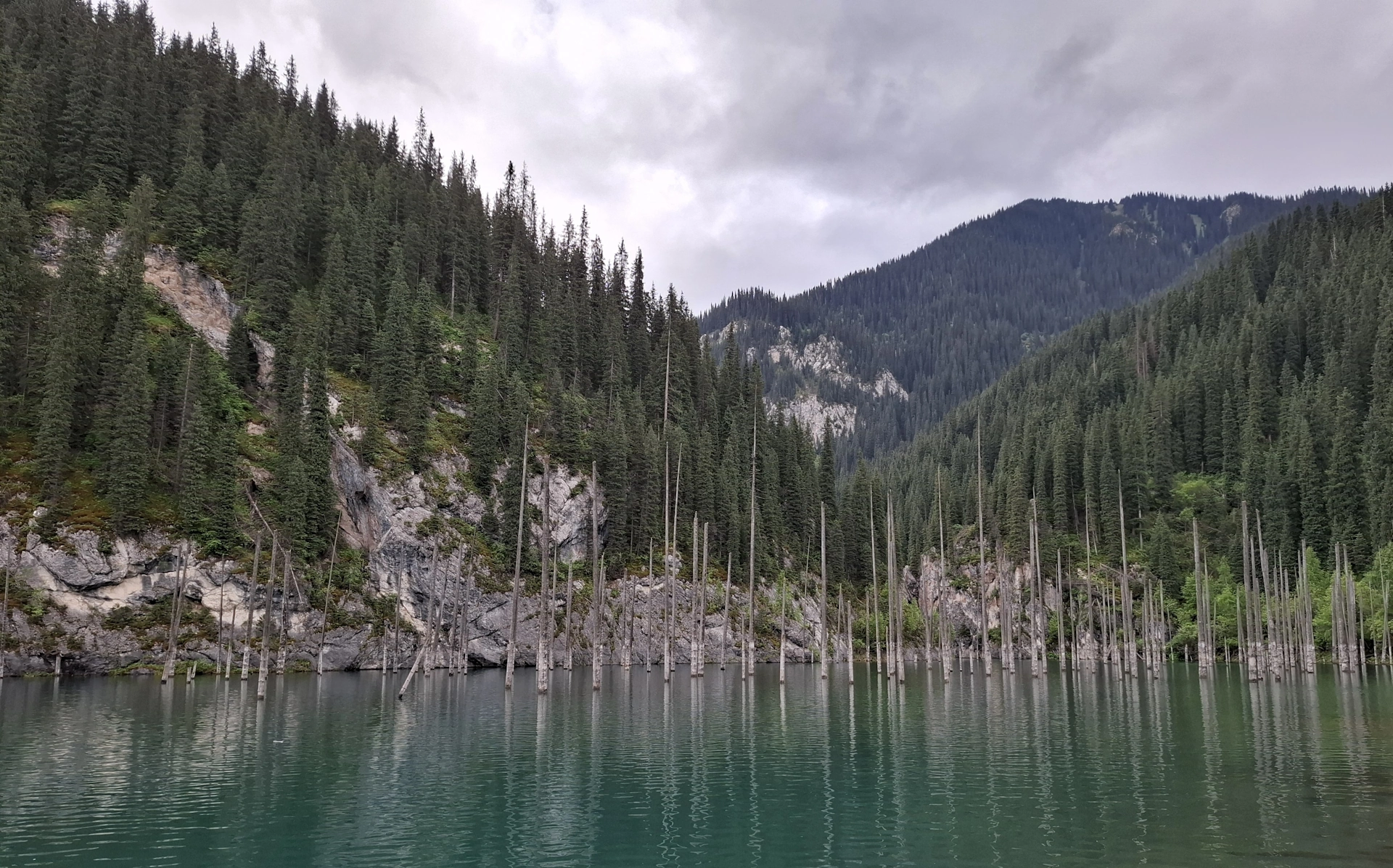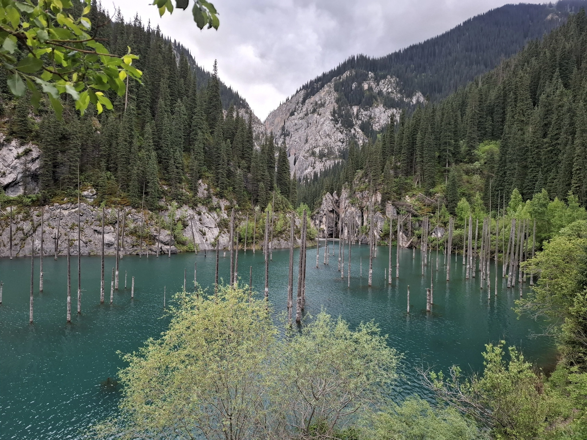 Още едно приказно красиво езеро, в прегръдката на планината Тян Шан. Това което го прави уникално, е смърчовата гора растяща в средата на езерото. Преди малко повече от век, в 1911 г., мощно земетресение разтърсва снагата на планината, предизвиквайки огромно, скално свлачище. Срутилите се скали преграждат пътя на спускащата се от планината река, образувайки естествен язовир с размери 400 на 150 м. и дълбочина до 40 м. Така растящите покрай корито на реката смърчове, се оказват в капан, в средата на новосъздаденото езеро. С годините, зелените корони на потопената гора изчезват, оставяйки голи стволове, които подобно мачтите на потънали кораби, стърчат от водите на езерото.