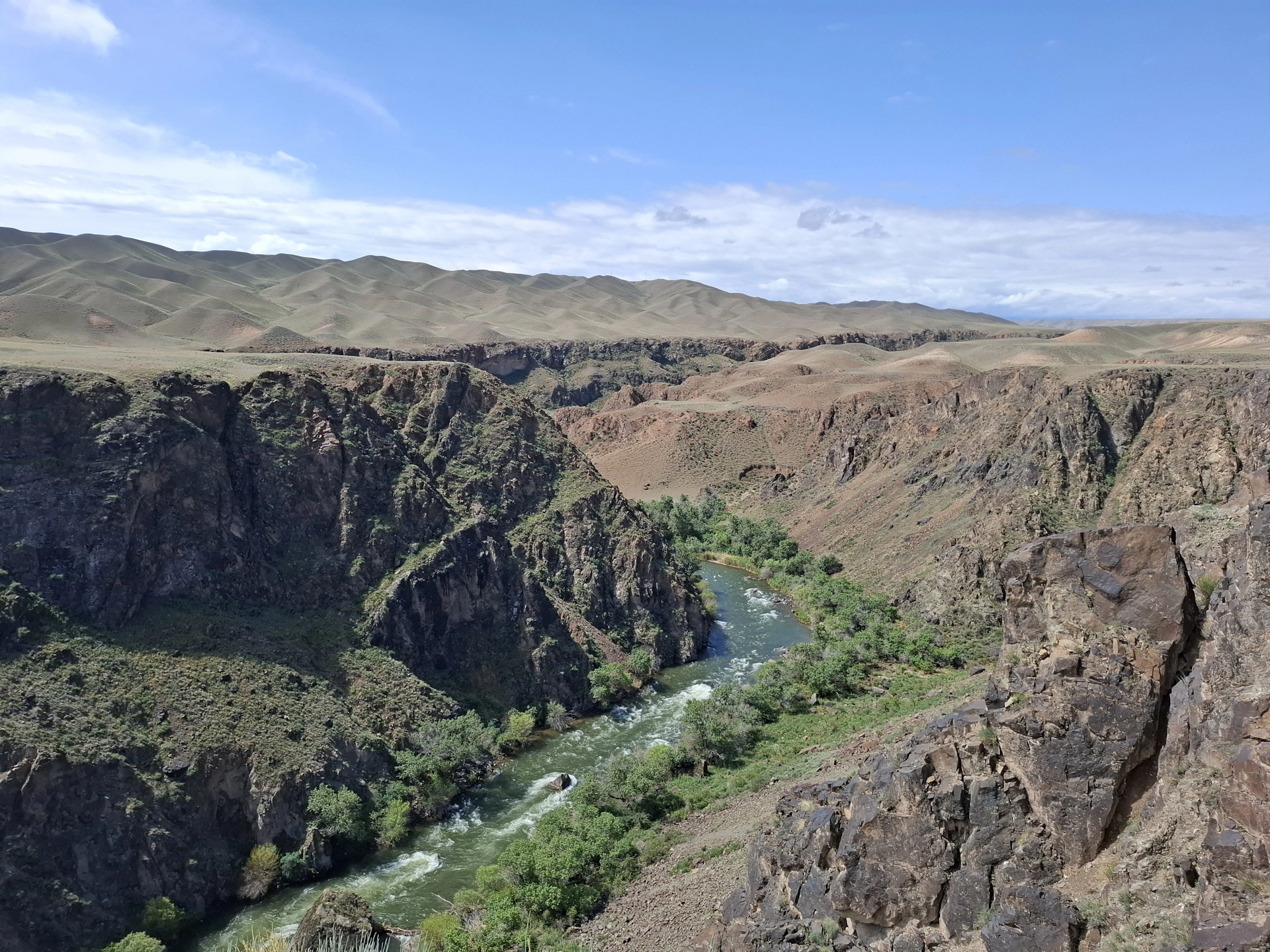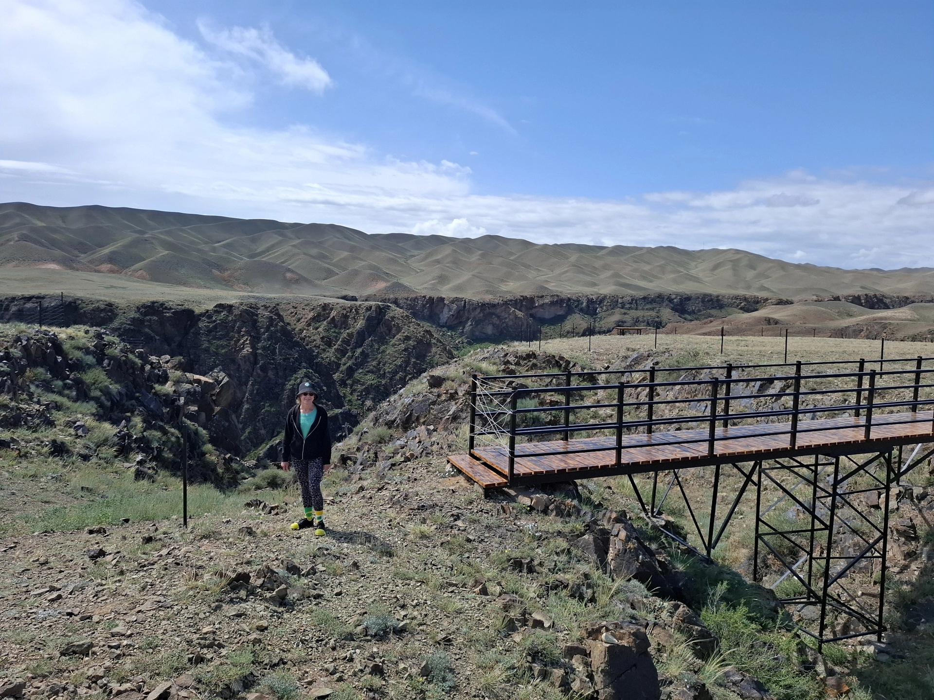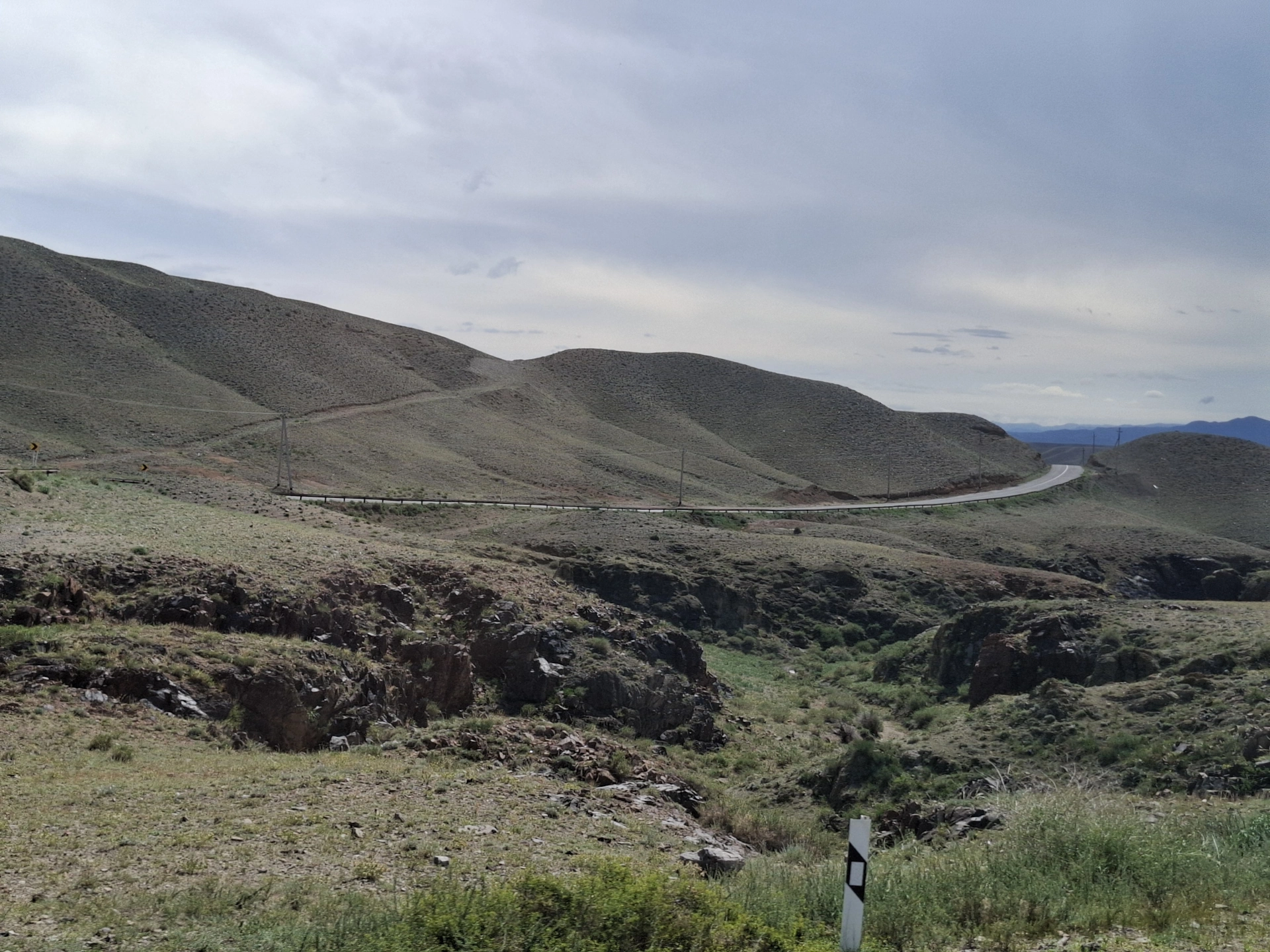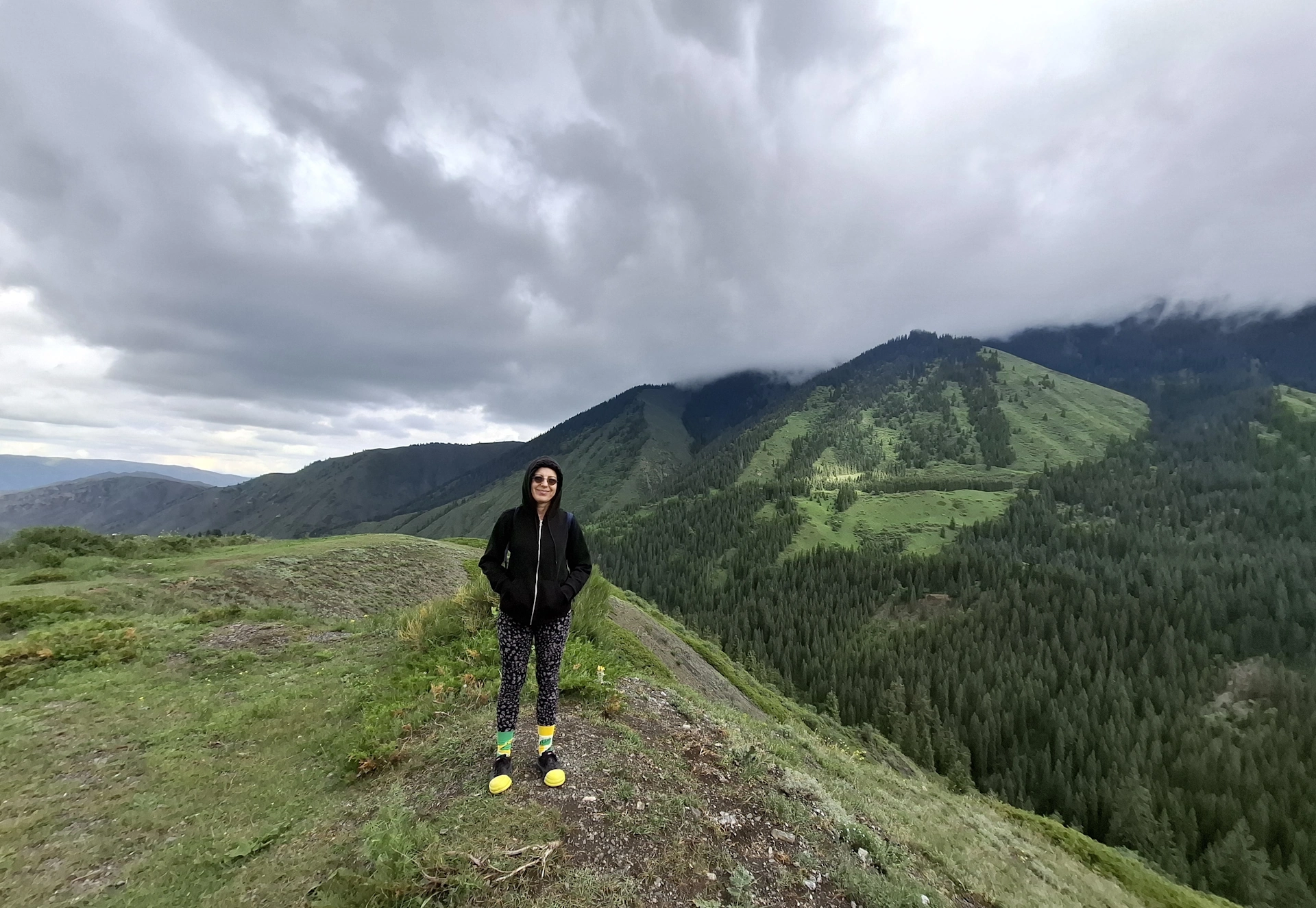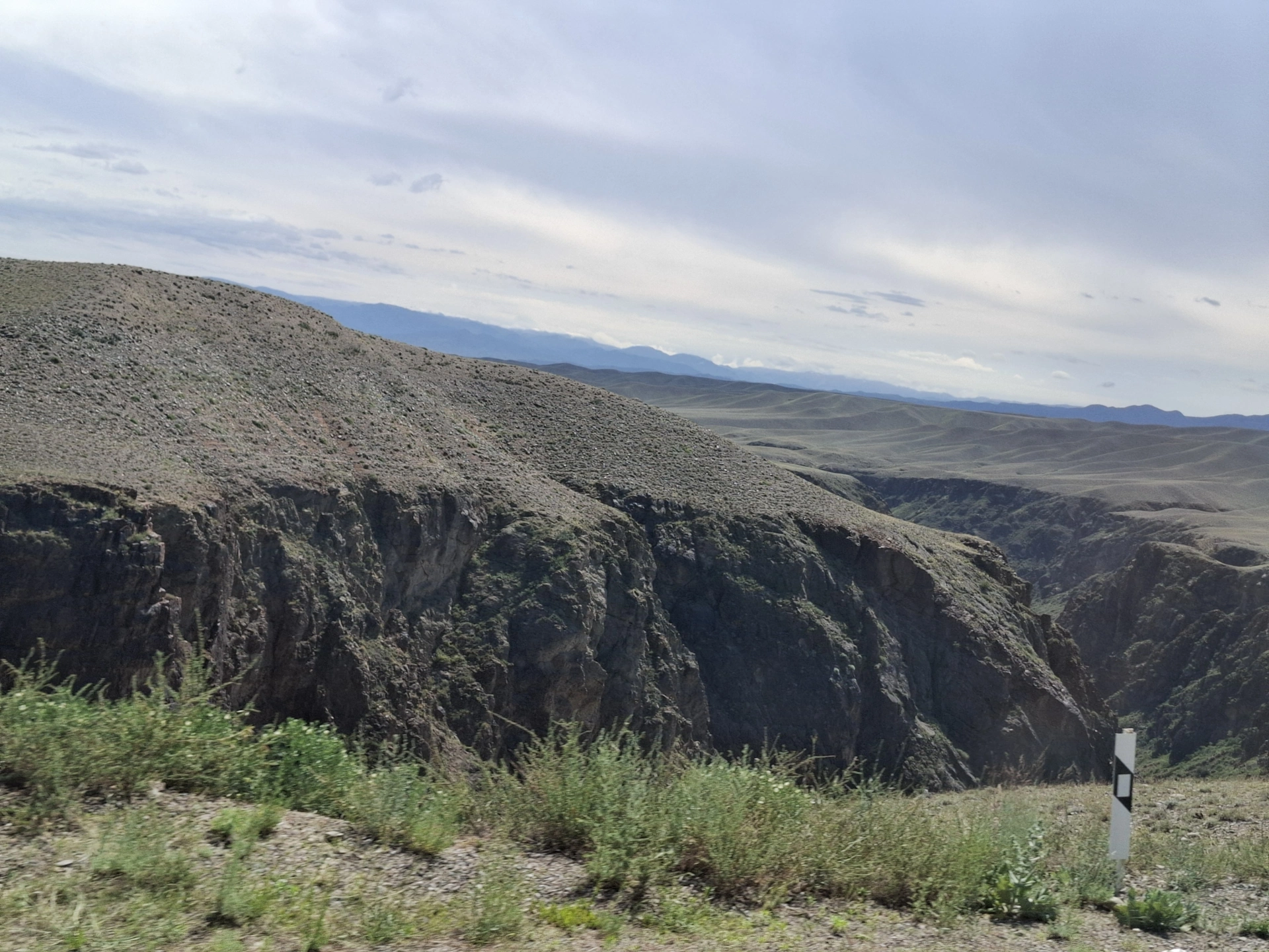 Следващият ни ден, бе отреден за природните забележителностите на Алматинския край. Те са изключително много. Доколкото, имахме само ден на разположение, се съсредоточихме на три от тях, включени в организирана еднодневна екскурзия на местен туроператор. Тръгнахме в 06:30 сутринта. Предстоеше ни, да изминем над 600 км., за да посетим Черния каньон, езерата Колсай и Каинди и да се върнем обратно в Алмати. Градът ни изпроводи с дъжд и тъмни, черни облаци. Съмнително начало на нашия поход в планинските вериги на Казахстан. Бяхме десетина човека, а транспортът ни, малък микробус. Водачът ни, млад руснак, се оказа добре запознат с природните особености, флората и фауната на Алматинския край. От него, дори разбрахме, че Алмати и София, се намират на една и съща географска ширина, което предполага сходни климатични условия. Развиделя, дъждът спря, а ние летяхме по широка четирилентова магистрала, през равната степ, към все по-ясно очертаващата се пред нас планинска верига.