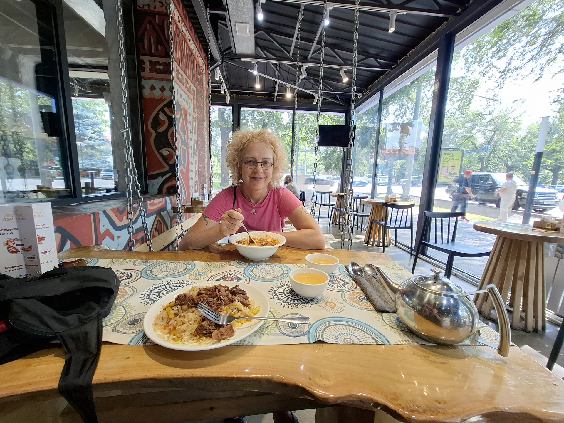Основната пешеходна алея на града, наричана от местните Алматинският Арбат, е улица Жибек жолы. За наше учудване, срещахме това име на много места в Казахстан. Причината за популярността му узнахме, когато преведохме фразата, оказа се „Пътят на коприната“.