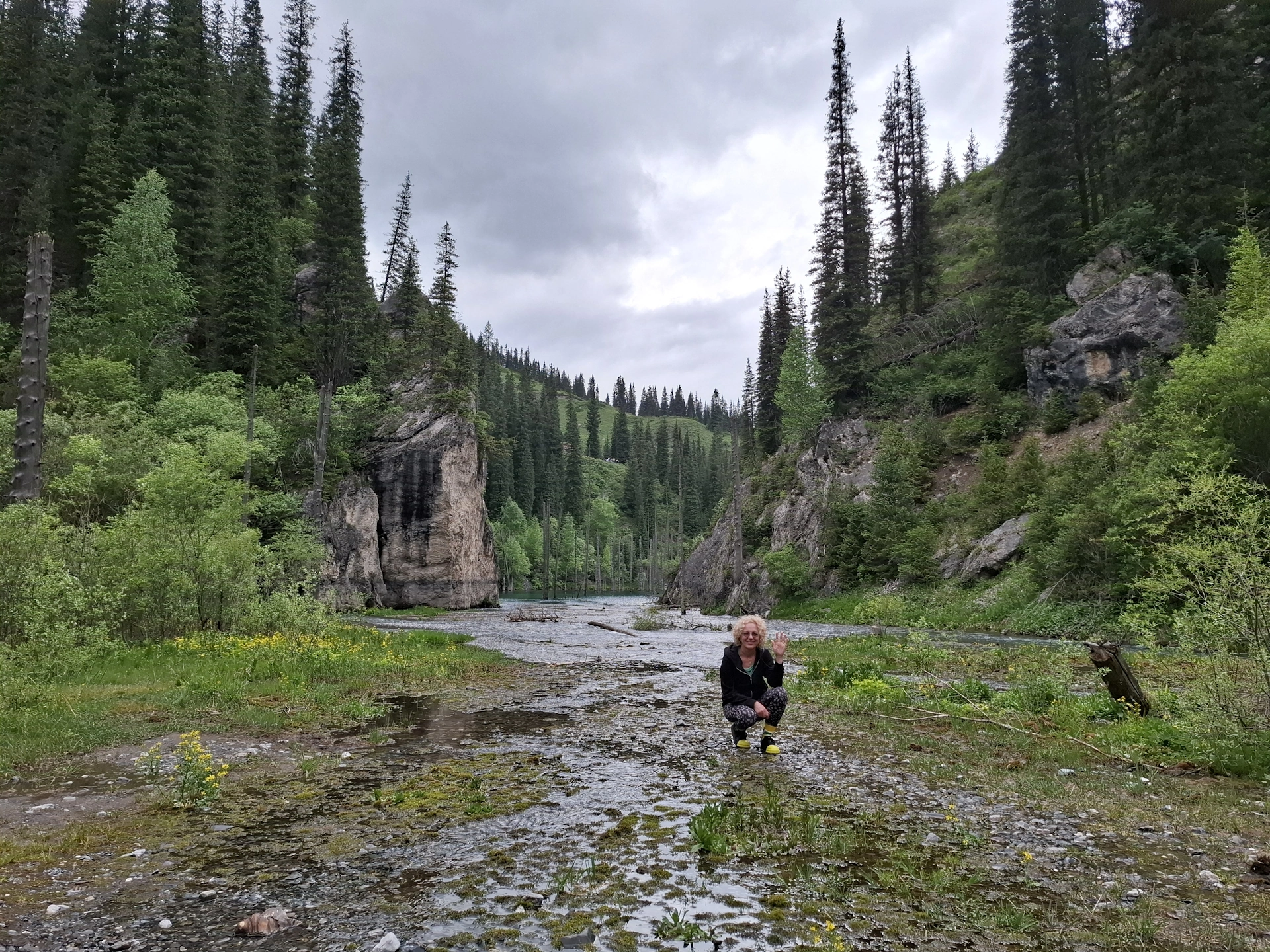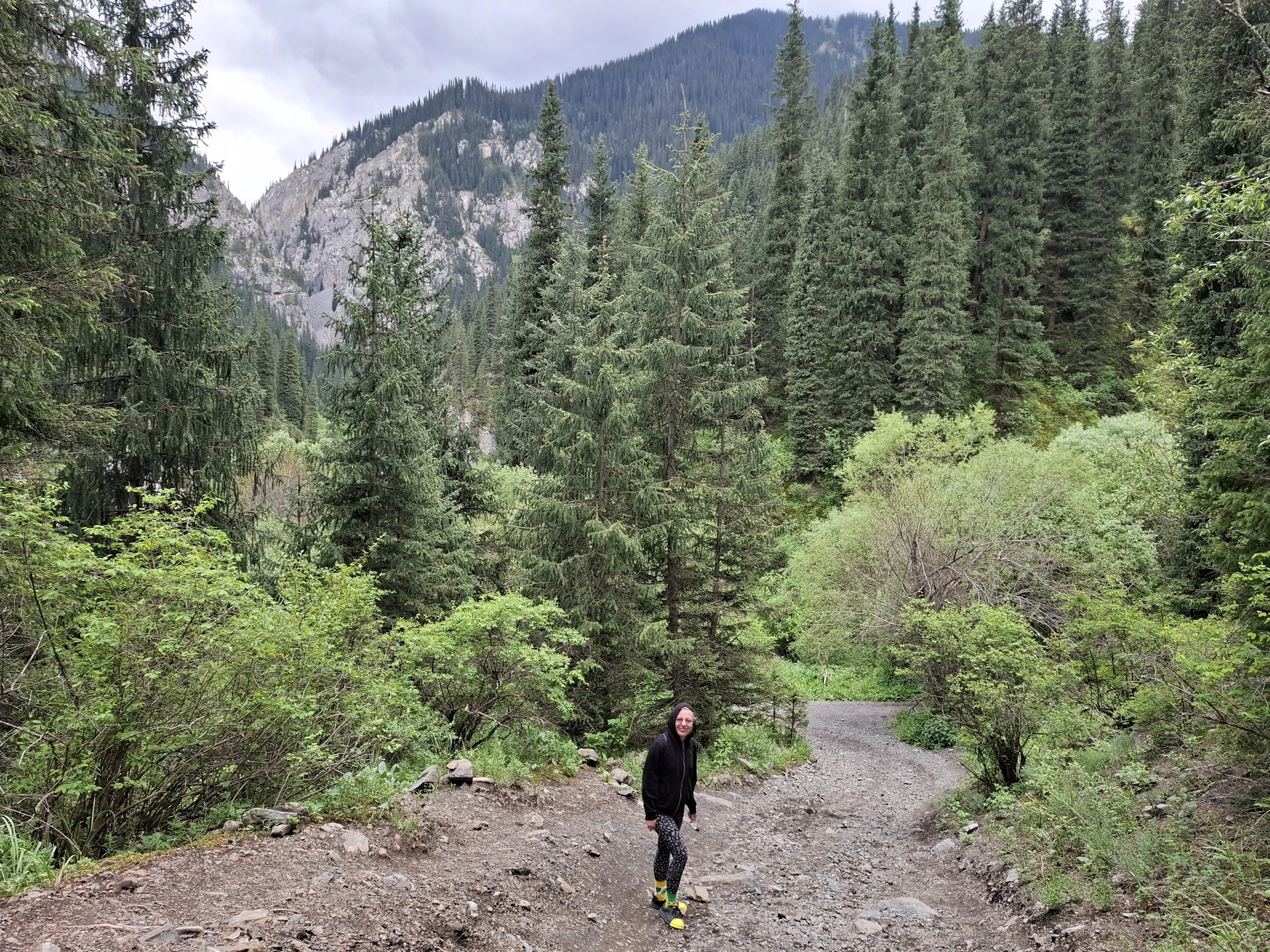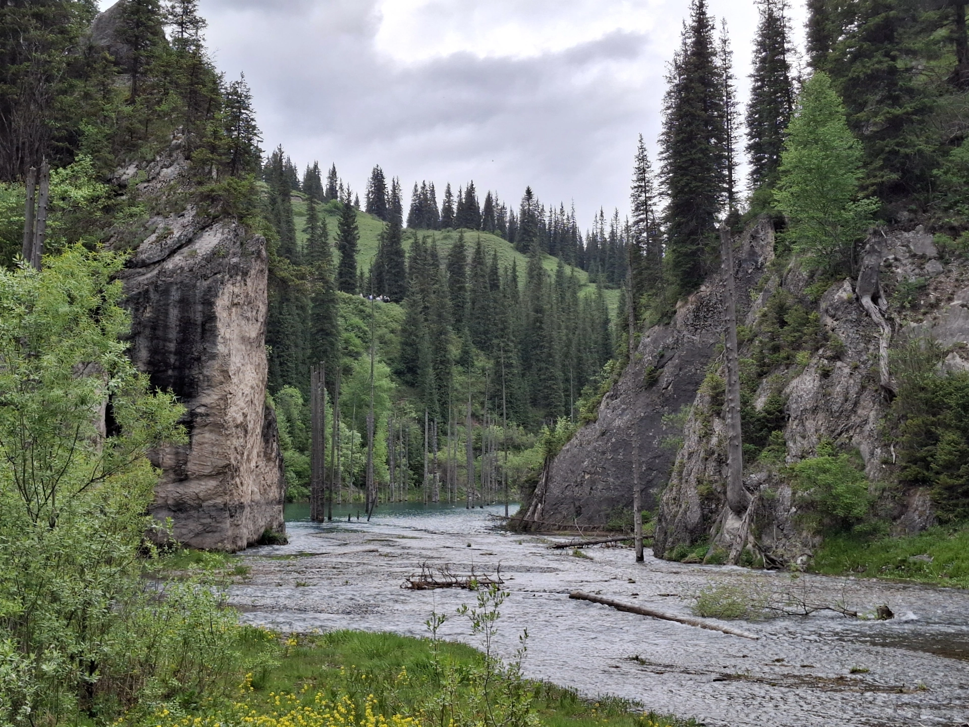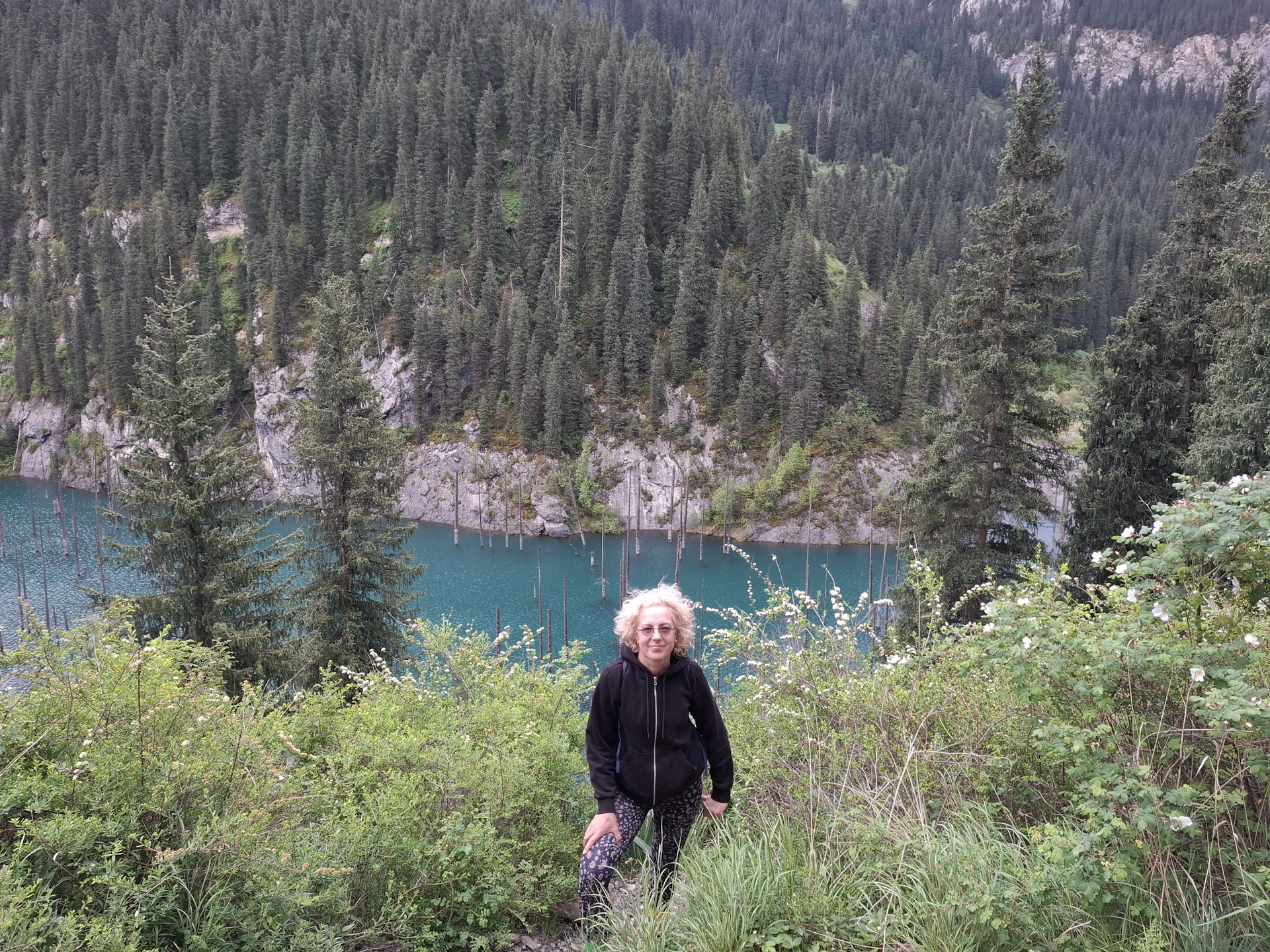 След Черния каньон, продължихме нагоре в планината, към границата с Киргистан и още една емблематична забележителност на Алматинския край – езерото Каинди.