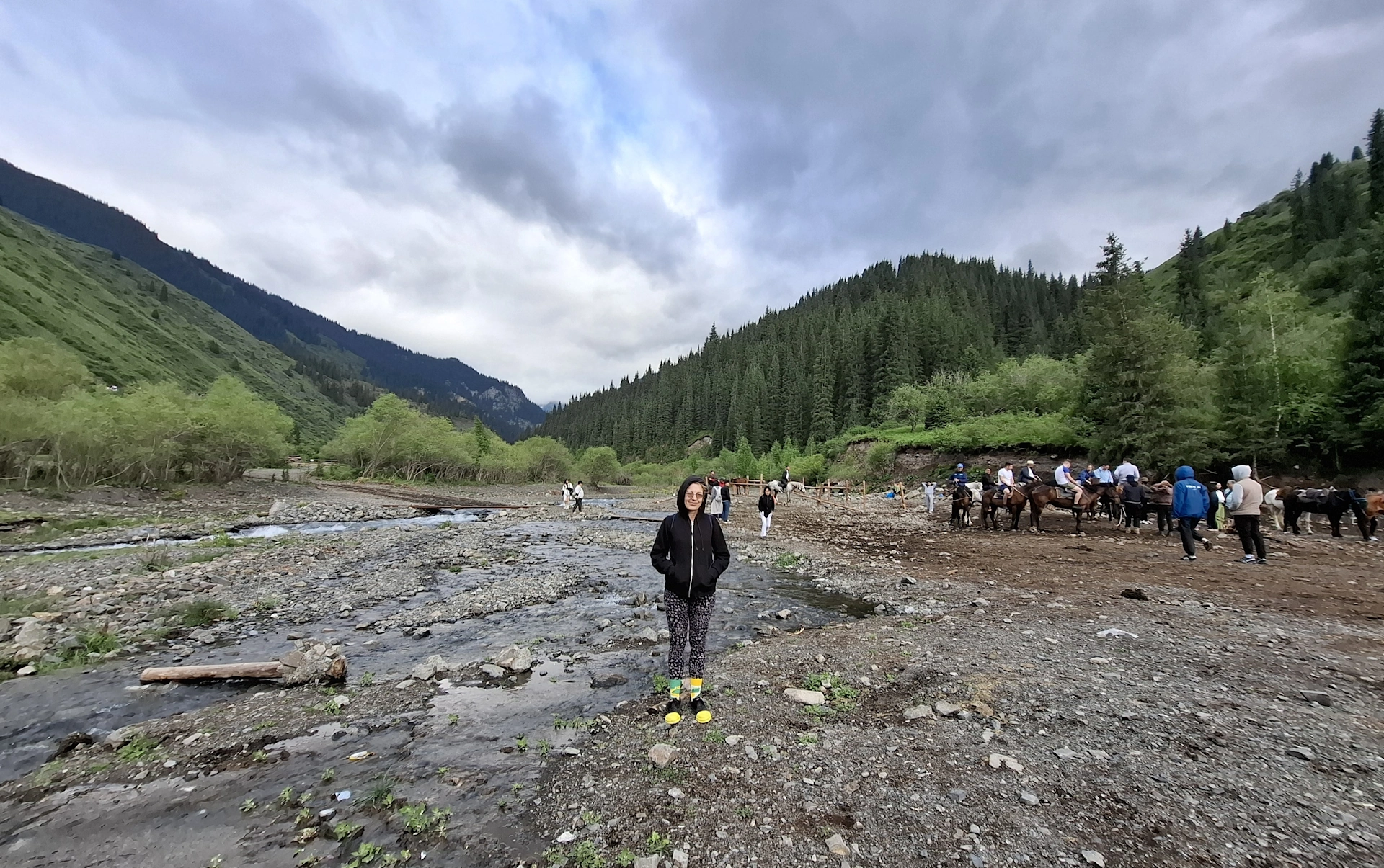 Така изминахме около 10 км. до голяма поляна, където беше крайната ни спирка. Оказа се обаче, че до езерото има още приблизително 2 км, нагоре в планината. Имахме избор, как да ги преодолеем - на кон, с друг транспорт или пеша. Водачът посъветва групата, да не тръгваме пеша, защото имал информация, че изсипалият се през нощта дъжд е превърнал пешеходния маршрут, в трудно проходима пързалка. Решихме да послушаме съвета му и избрахме другия транспорт, който този път се оказа УАЗ, още един спомен от времето на СССР.