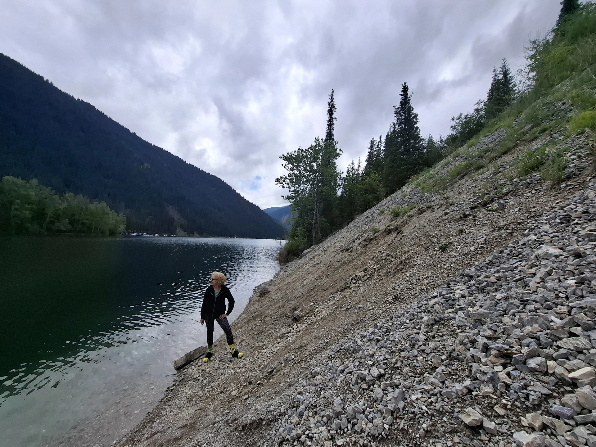 Нагоре, пътят стана още по-стръмен. Държах се с две ръце да не политна от седалката. Последните няколкостотин метра, изминахме пеша, спускайки се през иглолистна гора, надолу към езерото.
