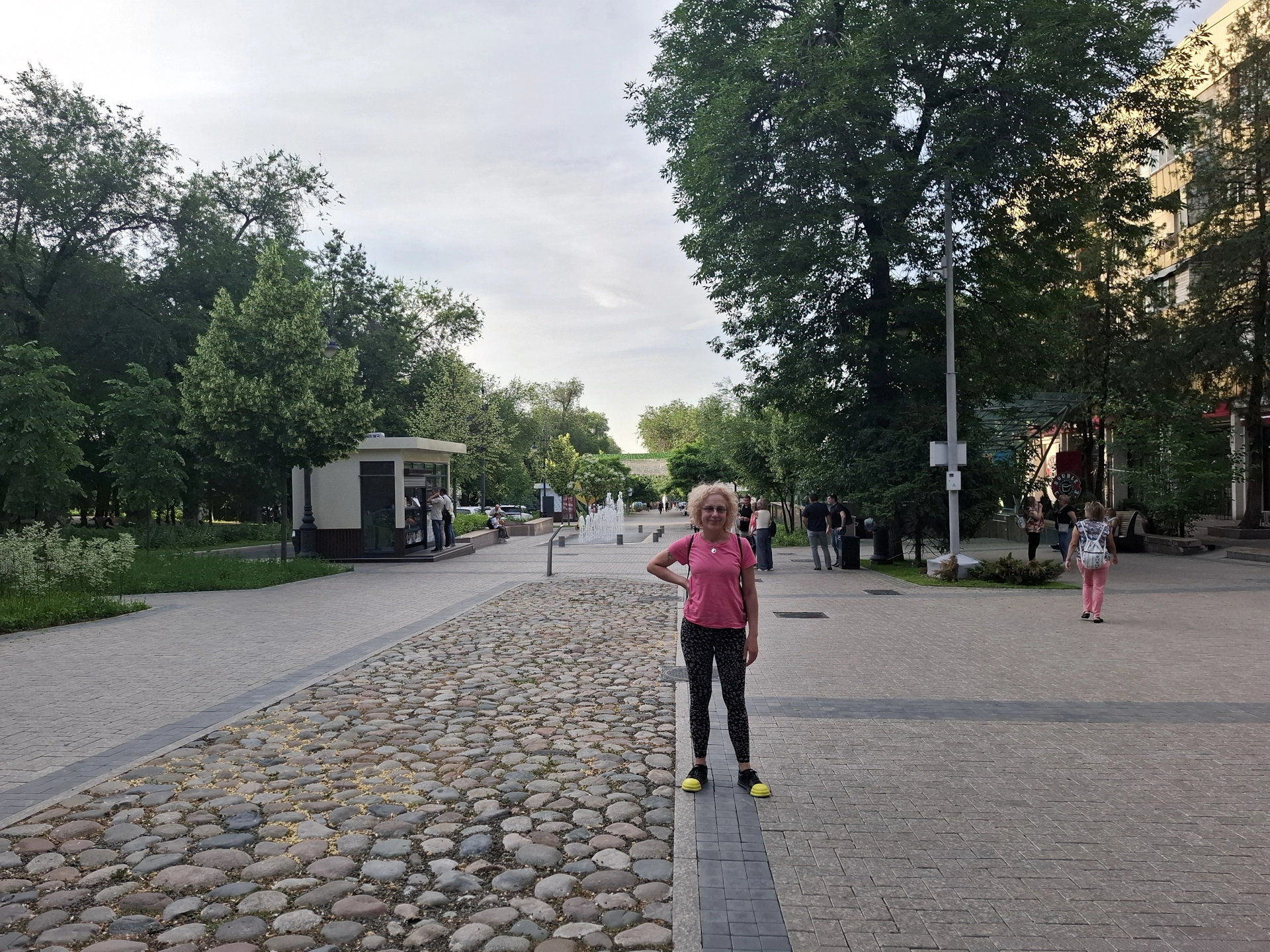 В Алмати, температурата на въздуха отново рязко се покачи, до около 30 °C. Но, затова пък, градът е гъсто залесен с големи дървета, предлагащи спасителна сянка. Може да се похвали с множество паркове и фонтани. Това не е типичният азиатски град, който бихте си представили, но няма и нищо общо с Астана. Лично аз, в него се чувствах, като върнала се в 90те години на соца, в архитектурния смисъл на фразата.