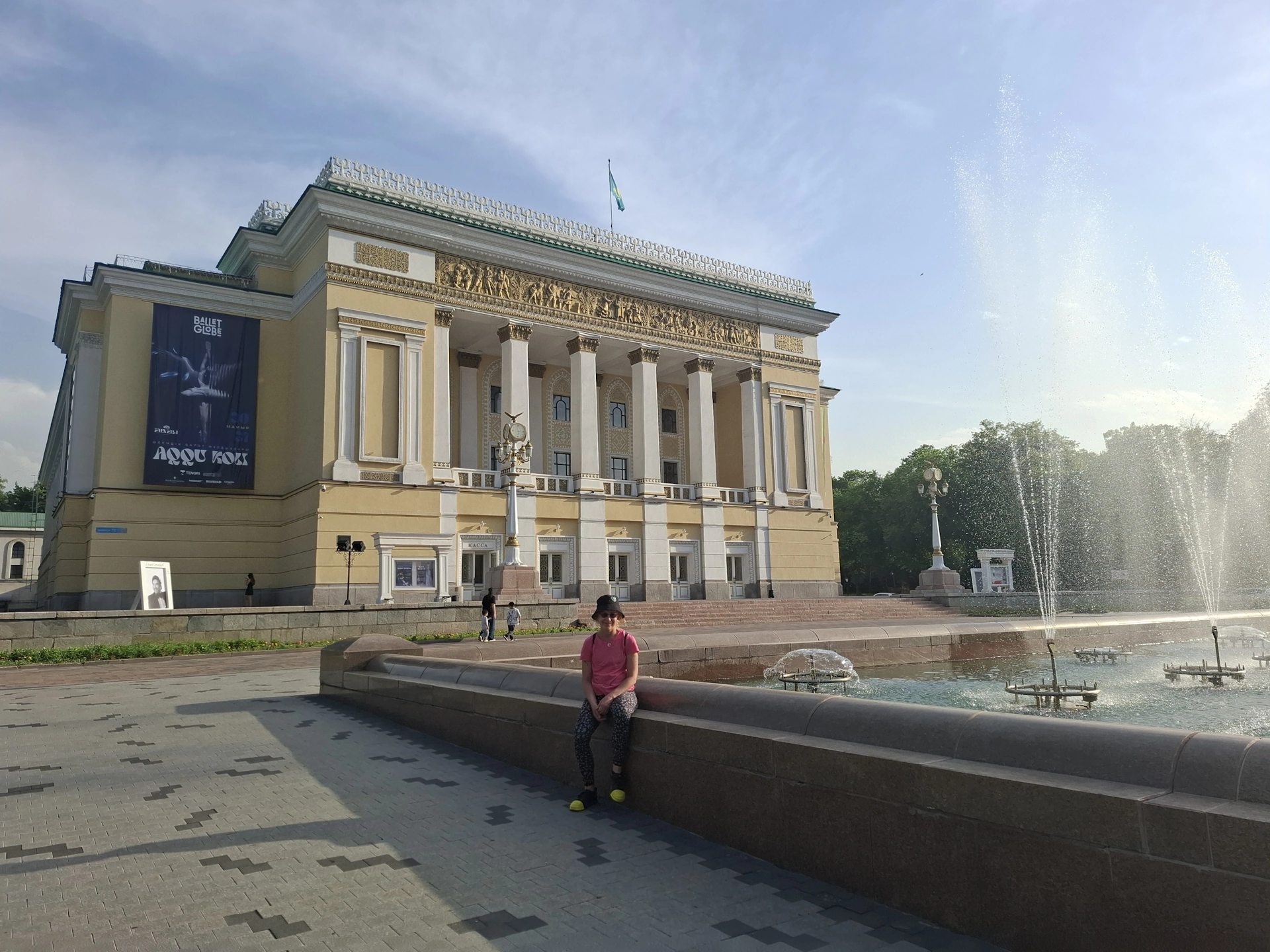 Движейки се нагоре по улица Панфилов, стигнахме до Казахският национален театър за опера и балет „Абай“.