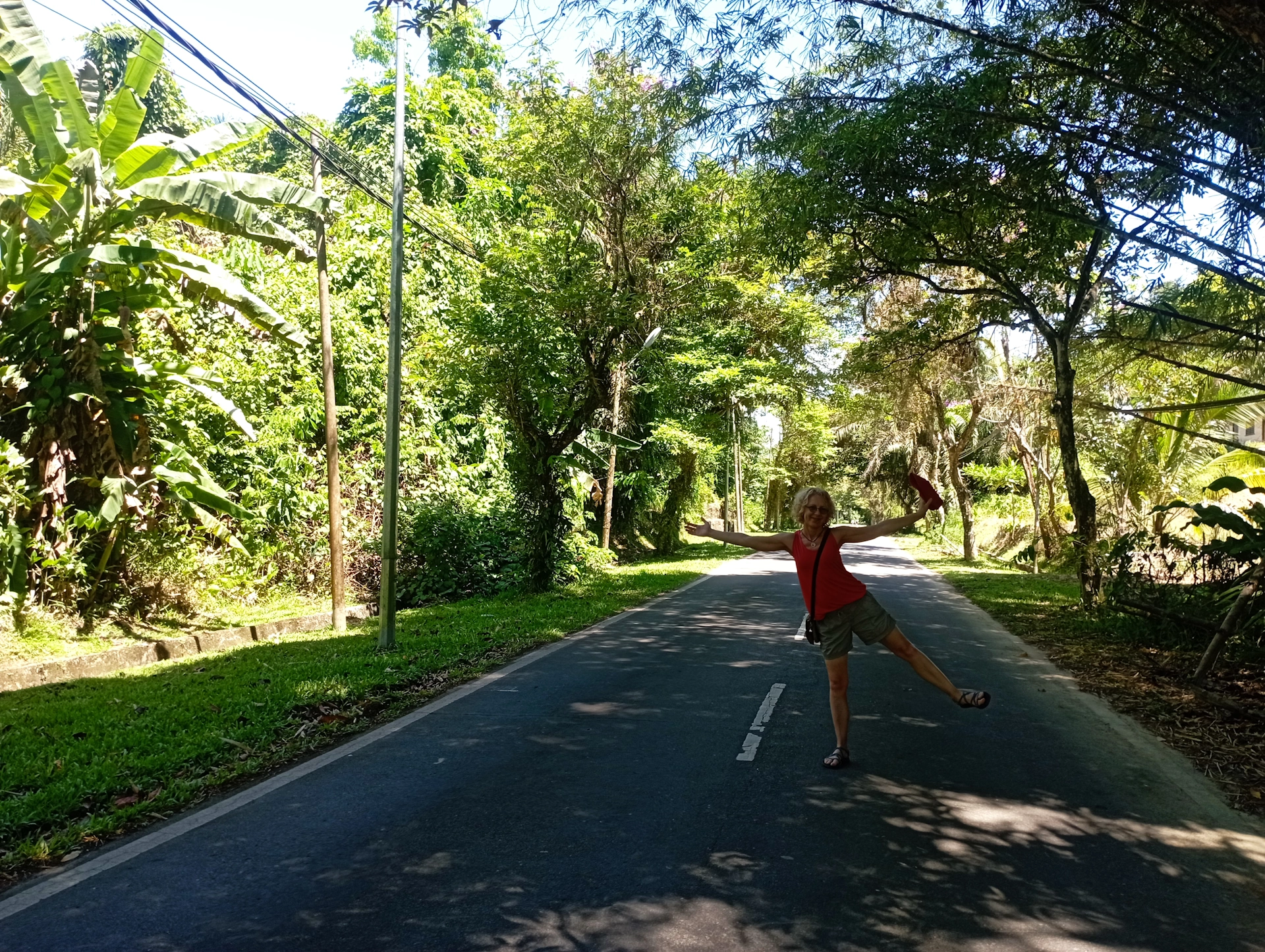 Неусетно денят превали, време беше да си тръгваме. Качихме се в колата на новите си познати – неочаквано любезно и общително семейство англичани. Техният хотел беше в Сандакан, затова ни оставиха на отбивката за Сепилок, от където до „нашето място“ имахме няколко километра. Пътят беше живописен и пуст, а ние имахме време и затова решихме да повървим. Изведнъж буквално на няколко метра пред нас бързо премина голям варан. Аз се стреснах, но половинката делово отбеляза „Я, обядът преминава.“😊.