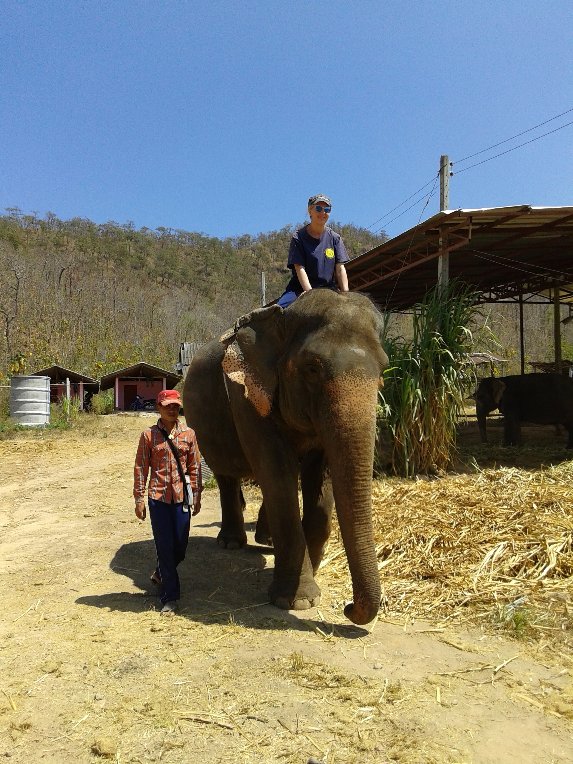 Сутринта, на втория ни ден в Чиан Май, се отправихме към близките планини, където се запознах с нова приятелка – слоницата Аран Я. Оказахме се единствените туристи за този тур. Причината за този късмет беше, че случайно сме уцелили пазарния ден на града. При срещата с Аран Я, първо усетих притеснение и несигурност. Бях само на крачка от огромен слон, способен просто с едно замахване на хобота, в най-добрия случай, да ме събори на земята.