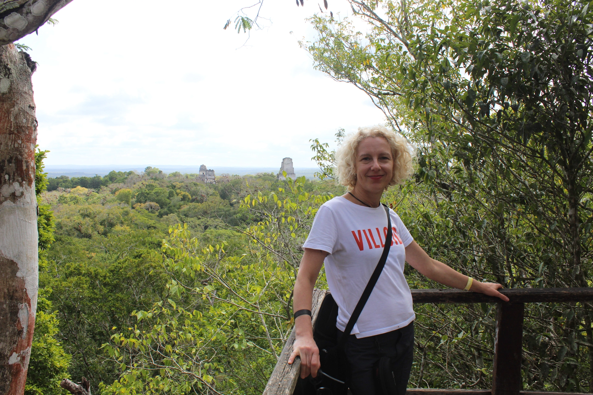 Пред нас се откри безкрайно, зелено море опиращо в хоризонта. Само върховете на храмовете се подаваха над повърхността му. Именно тук, застанала на покрива на джунглата, изпитах най-ярките усещания в този изпълнен с емоции ден. Думите не ми стигат за да опиша усещането. Чуствах се вдъхновена, сякаш бях птица в полет над простиращата се под нас селва. В същото време, бях и зашеметена от височината на която се намирах. Гледката ме прикова. Седяхме на един от первазите на пирамидата, без да можем да откъснем поглед от заобикалящата ни красота. Не знам колко време прекарахме така, времето сякаш беше спряло.