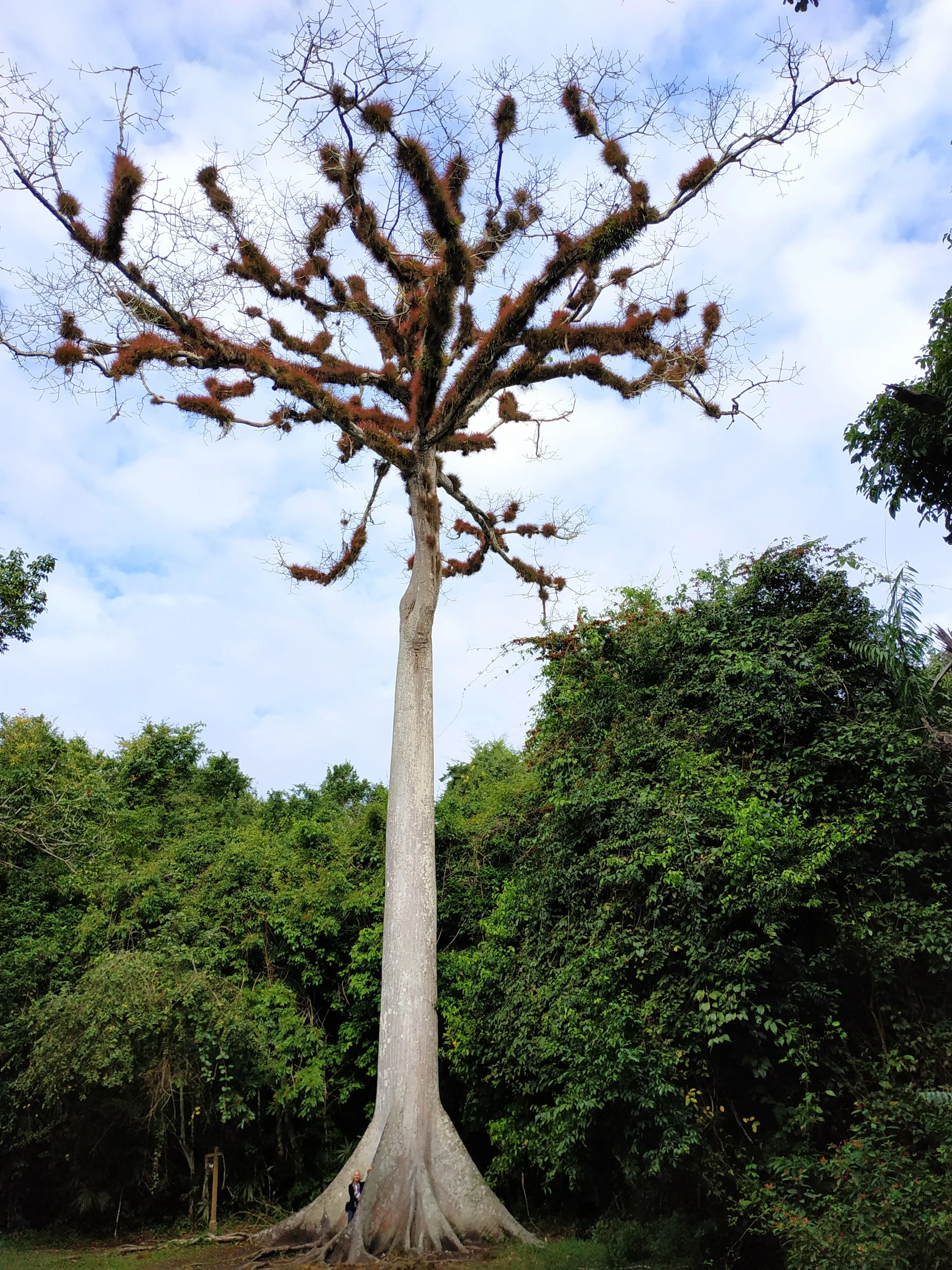 Лутайки се по пътеките между руините на Тикал, попаднахме на поляна, в центъра на която се извисяваше огромно, много странно изглеждащо дърво. По клоните му нямаше нито едно листо, но в същото време, те бяха почти изцяло покрити с кафяви туфи, нещо средно между мъх и трева.