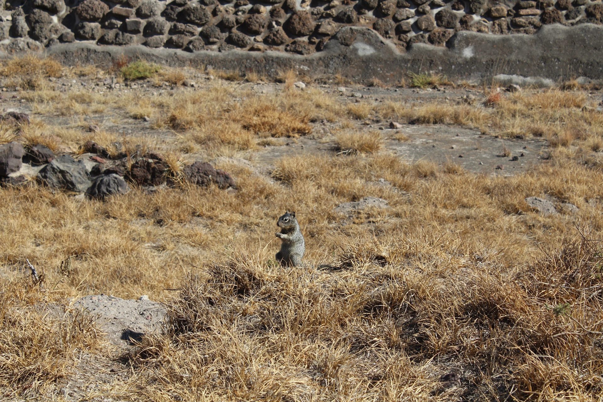Околността зад пирамидата представляваше изгорена от слънцето трева, с отделни, самотни дървета и разбира се, кактуси. Тук е пълно и с едри гризачи, нещо средно между катерички и нашите лалугери.