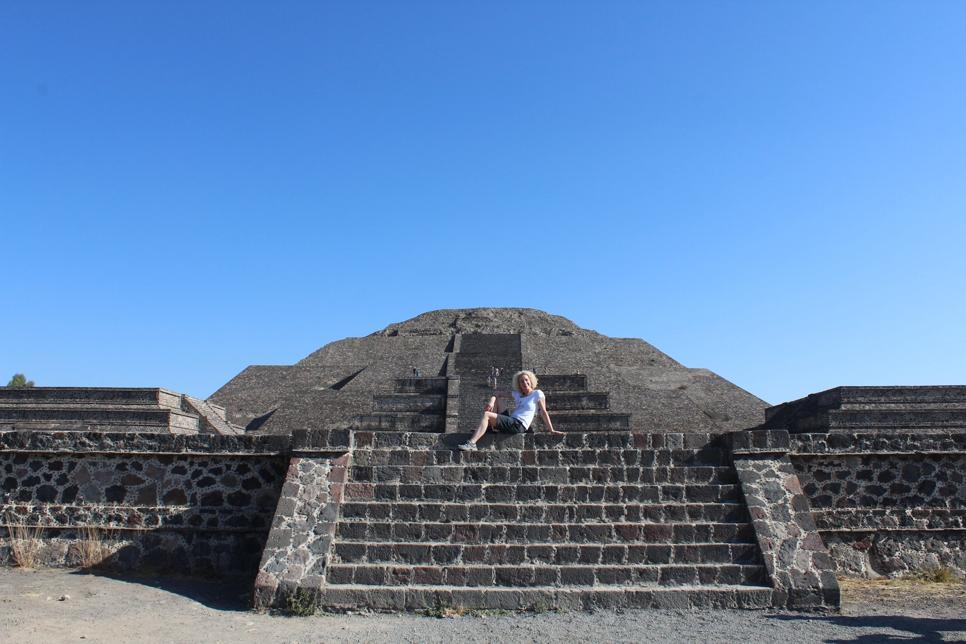 Тръгнахме нагоре, по стъпалата, по които се е проляла кръвта на десетки, а може би стотици хиляди хора, във възхвала на отдавна забравените богове на ацтеките. Не знам защо, но изкачването на пирамидата на Луната, бе разрешено само до средата ѝ. Може би все пак, духът на древните боговете е все още жив в епицентъра на тяхното кърваво капище. Достигайки средата на пирамидата, се обърнахме назад. Пред нас се разкри красива, панорамна гледка – право напред бе пътят на мъртвите, в цялата си дължина. От лявата му страна величествено се издигаше пирамидата на Слънцето. Трудно ми бе да възприема, как цялата тази внушителна красота, е била преплетена с толкова много кръв и жестокост.