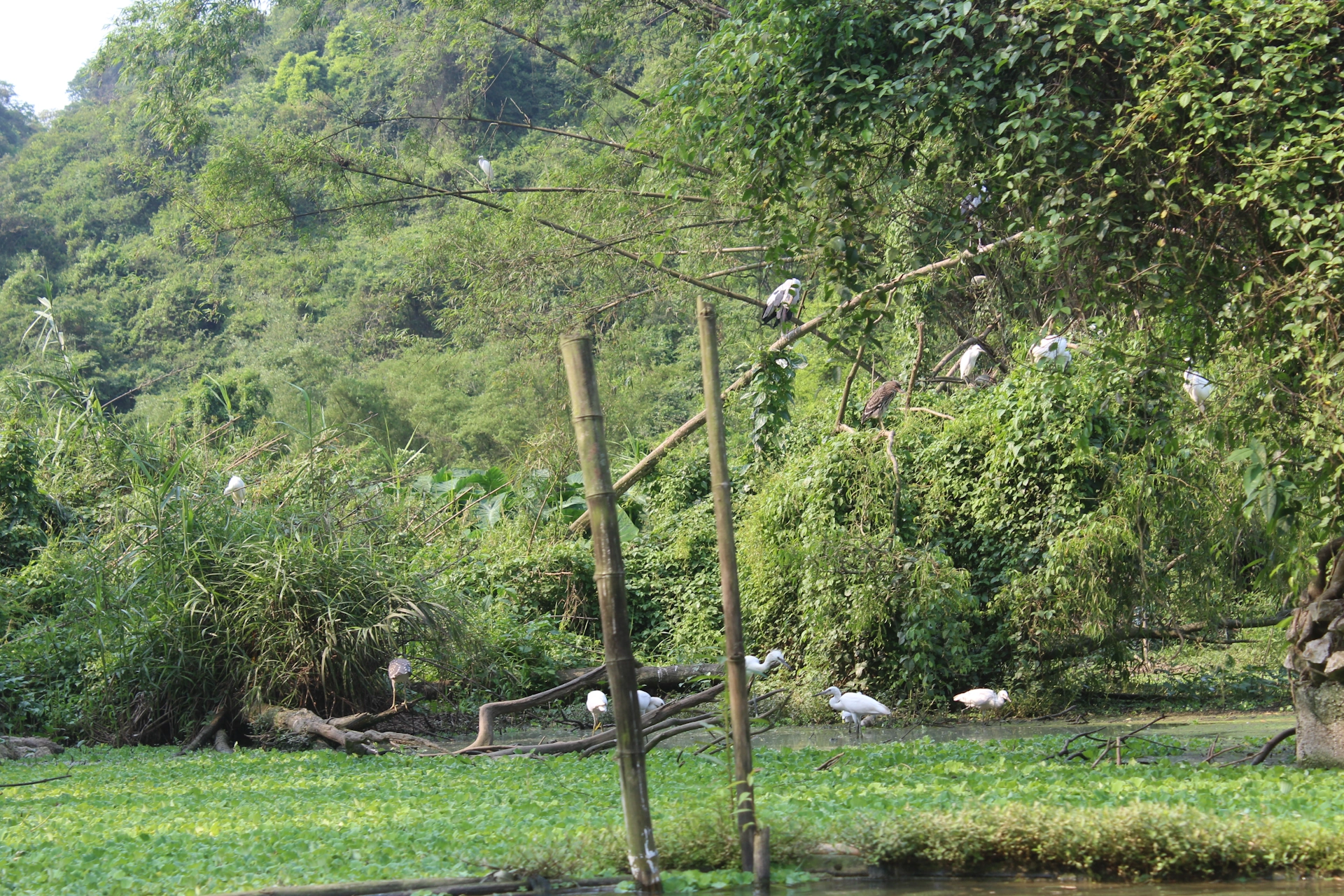Парк оформен около наводнена гора, в която основната атракция са множеството гнездящи птици. Тук също има варовикови планини и пещери, но в това отношение не може да се сравнява с Транг Ан. По периферията си, паркът е опасан с туристически пътеки. По една от тях тръгнахме и ние.