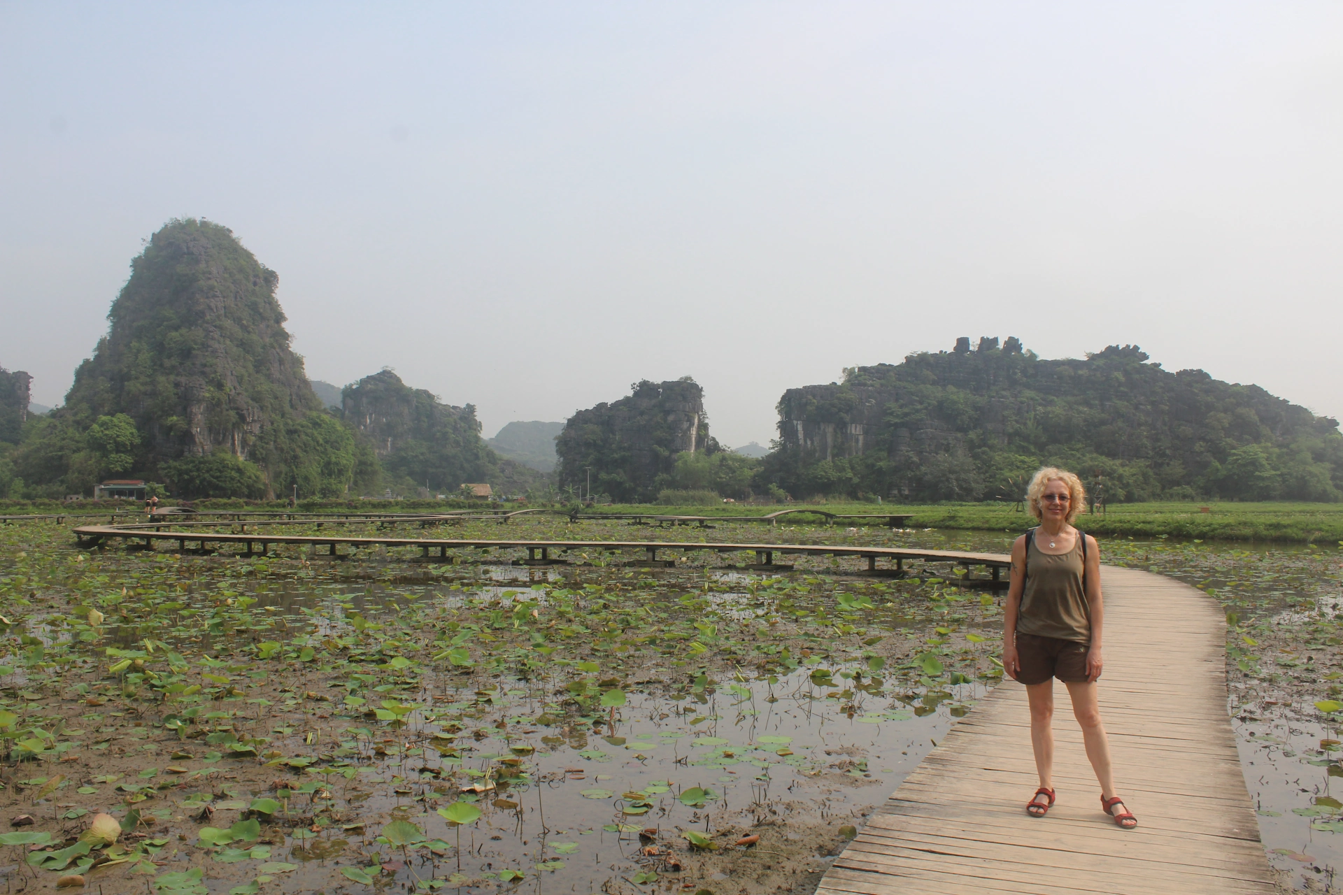 Както винаги, на следващия ден, станахме рано сутринта. Идеята ни беше, да наемем велосипеди, с които следващите три дни, да се придвижваме в района на националните паркове. Така и направихме. Карането на велосипеди там, беше страхотно и ненатоварващо изживяване. Пътищата бяха равни, трафикът слаб, а пейзажът зашеметяващ. Отдалечавайки се от основните пътища, навлизахме между просечени с канали оризови полета, по краищата на които, се издигаха вертикално нагоре, обрасли с дива растителност карстови хълмове. Действително, сравнението със залива Ха Лонг, бе повече от удачно. Красотата около нас, бе примесена с усещането за самобитния селски живот в тази част на Виетнам. Комбинация, създаваща една неповторима атмосфера.