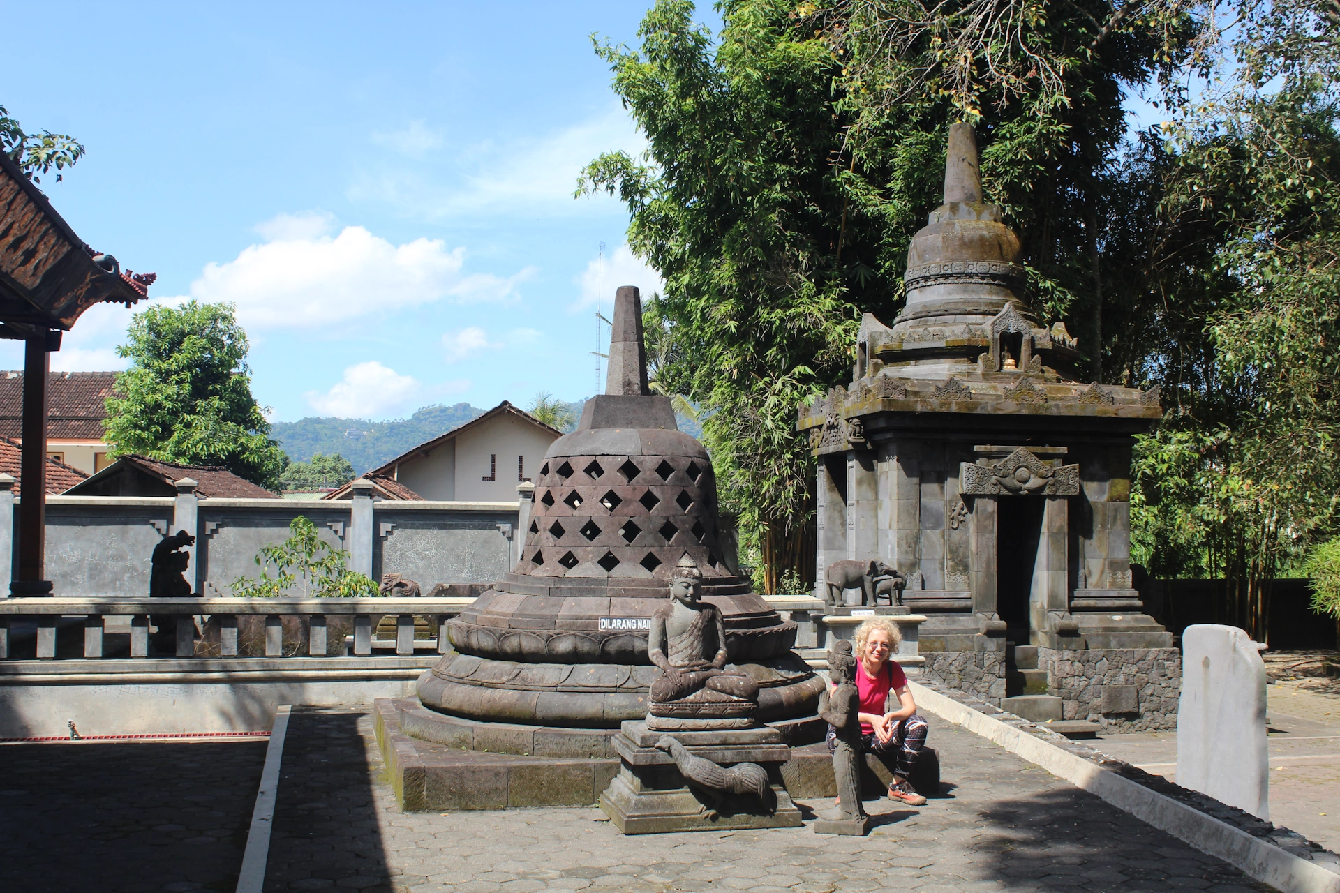 След Борободур се насочихме към нашият бонус - будисткият храм, но той се оказа затворен за външни лица, защото се провеждаше религиозна церемония. Полюбувахме се на статуите и красивите лотоси в предверието му и продължихме за Прамбанан.