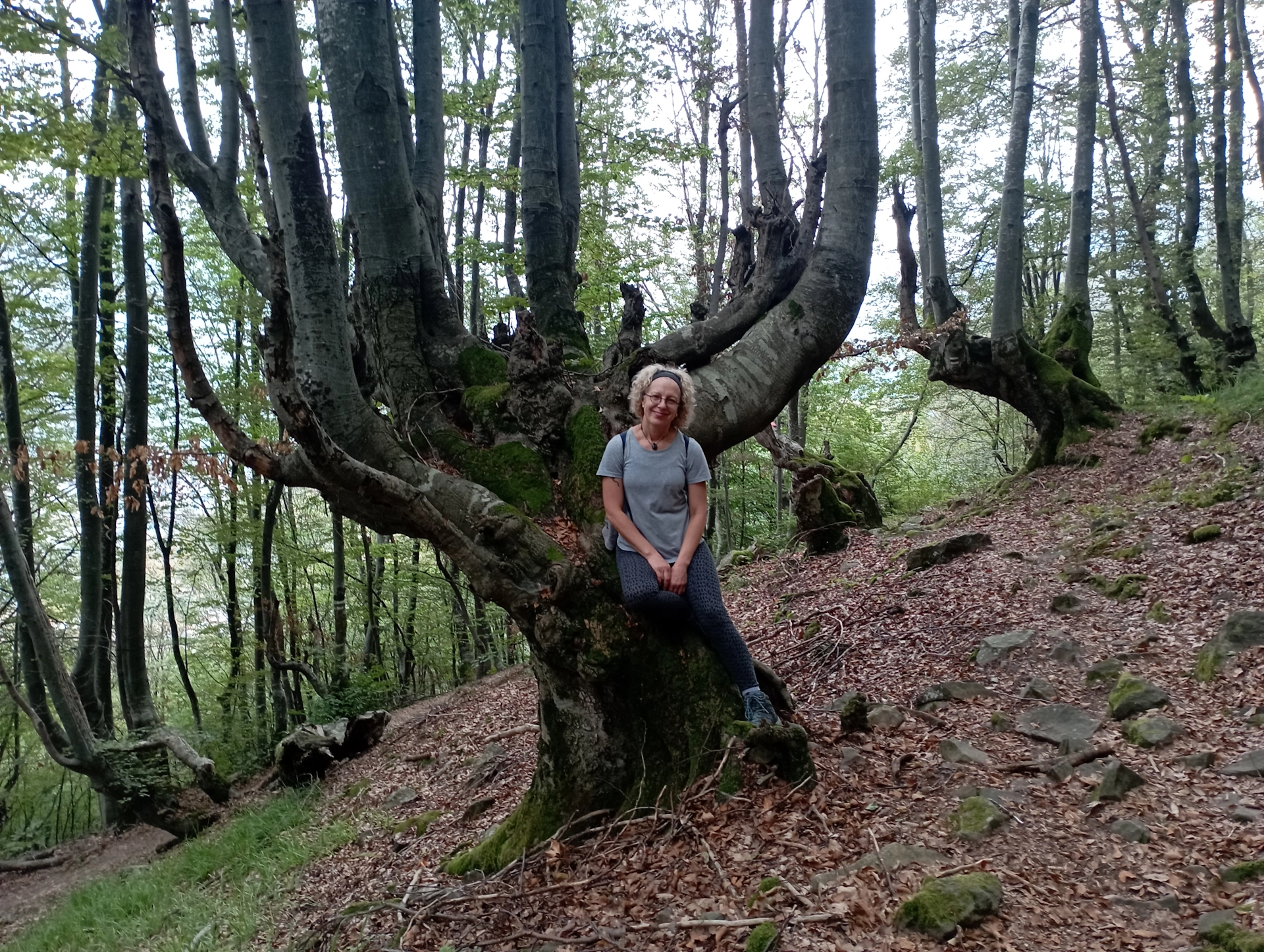 Отново навлязохме в буковата гора. До разклонението към върха, всичко беше добре. От там обаче, следваше изкачване нагоре, през гората, по стръмен скат. Следвахме вече червената маркировка.